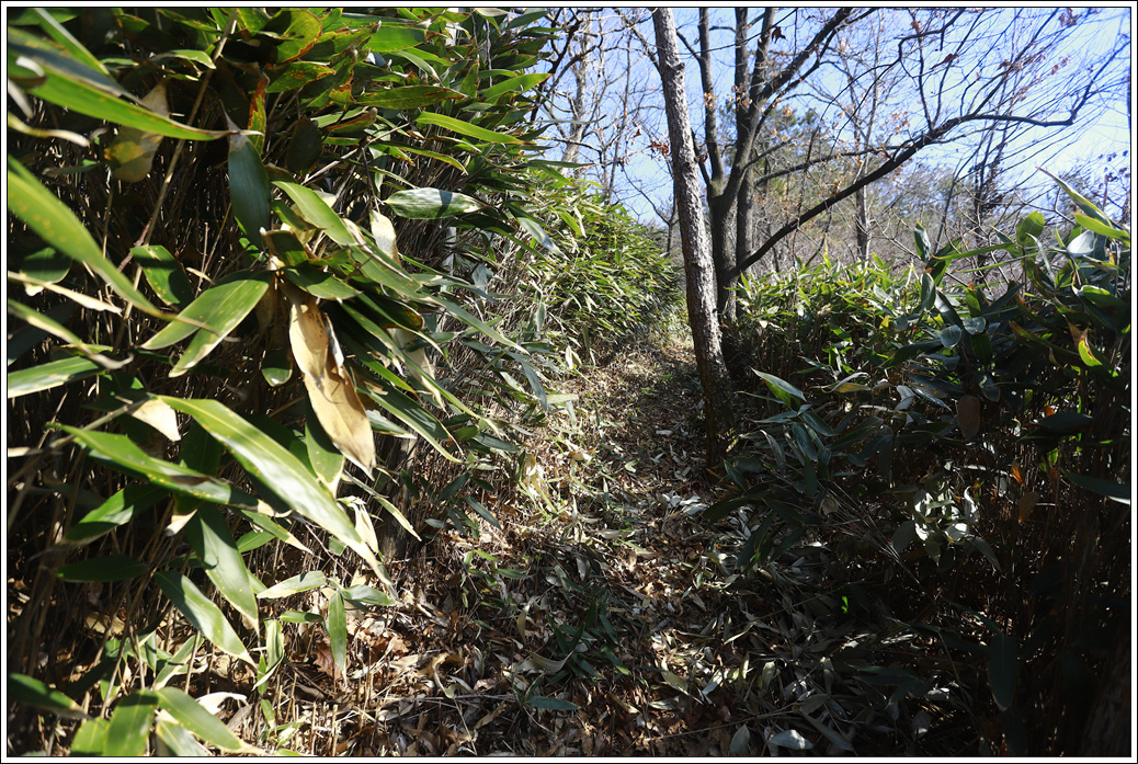 ▼ 능선상의 산죽이 숲을 이루고 등로가 잘 정비되어 힐링이 되는 코스다.