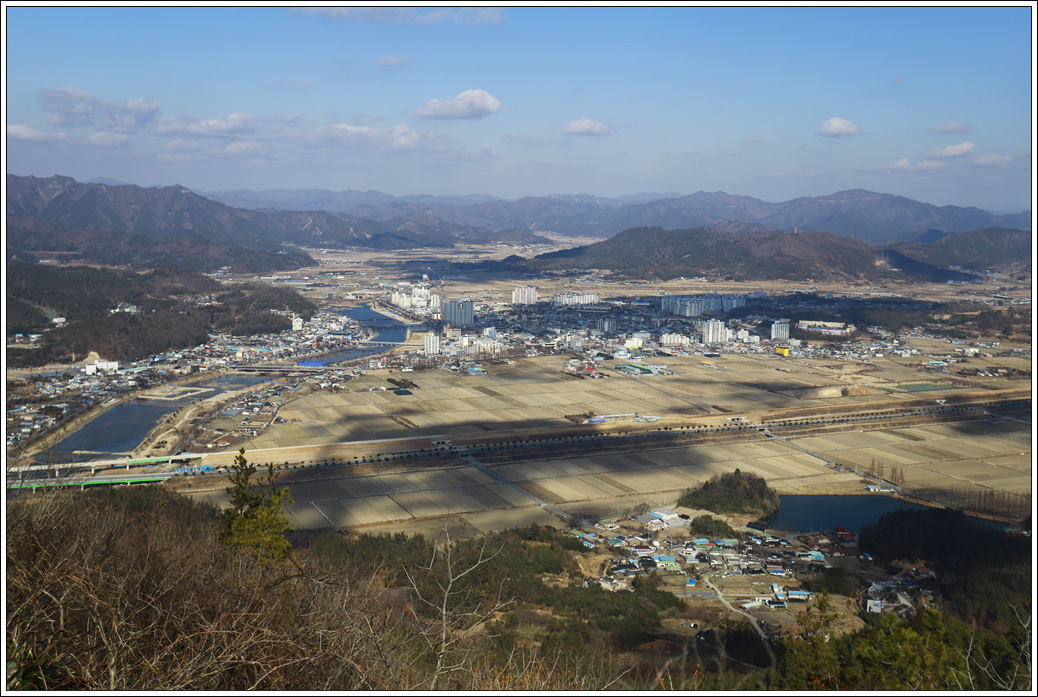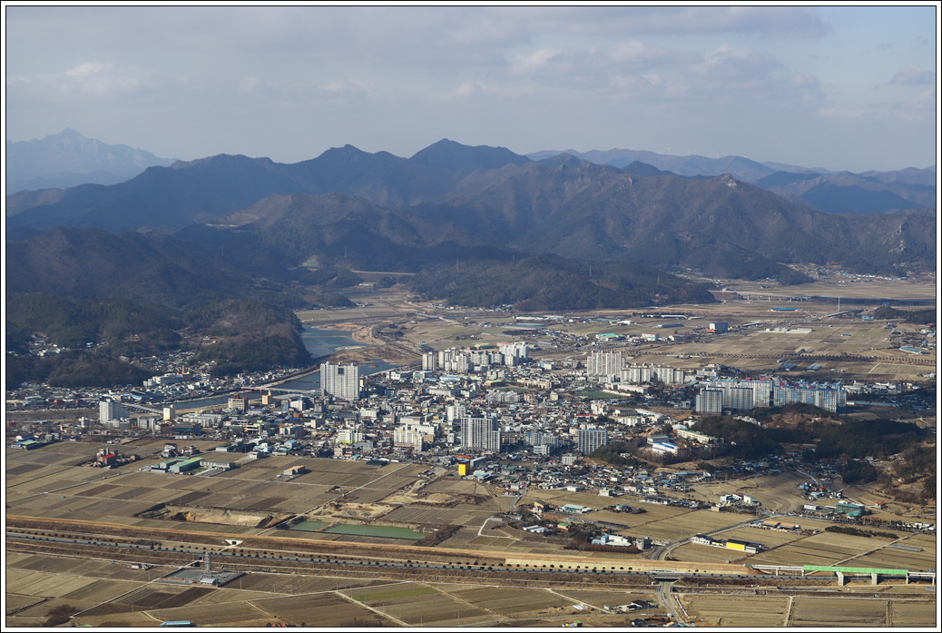 ▼ 구름에 가려진 장흥읍내...굽이쳐 흐르는 탐진강과 평야지대가 있고 주변의 빼어난 산들이 있어 지리적으로 참 좋아 보이는 고장이다.