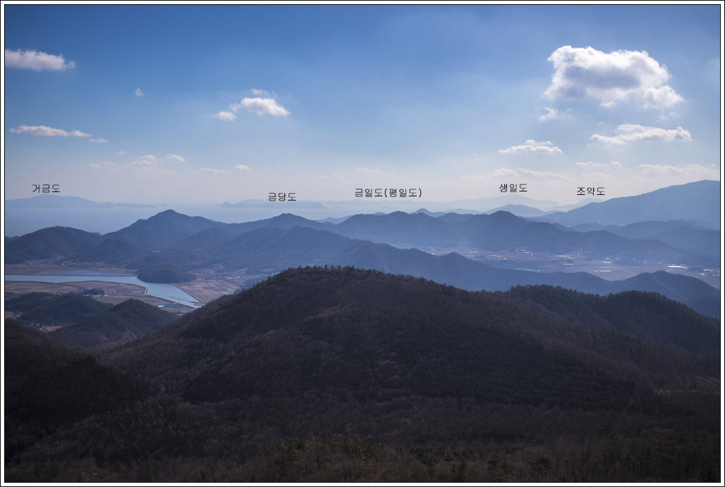 ▼ 남쪽 방향의 풍경...금당도와 생일도, 조약도는 가봤던 섬이다. 거금도는 언젠가 가 봐야 할 블야 50섬 섬산행지이기도 하다.