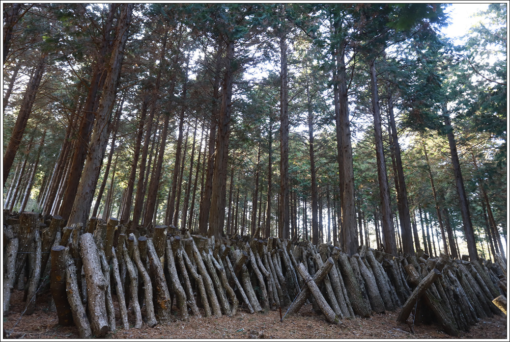 입장료를 내고 휴식을 하거나 산림치유 체험을 하는 편백나무우드랜드가 따로 있다. 등로상의 편백나무숲에는 표고버섯 재배를 하고 있으나 겨울이라서 그런지 한송이도 보지 못했다.
