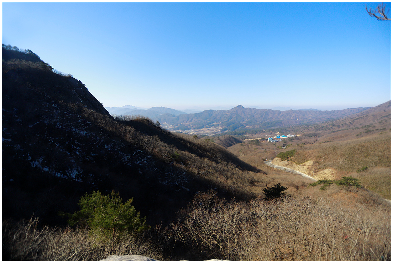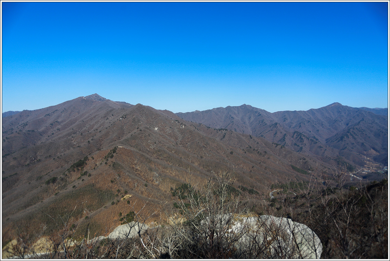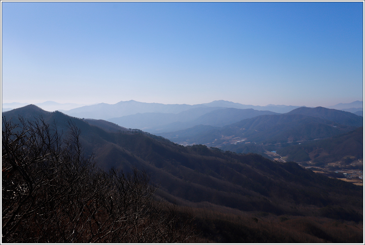 ▼ 작년 11월 말에 올랐던 동쪽의 금원산에서 남쪽 방향으로 뻗은 기백산.