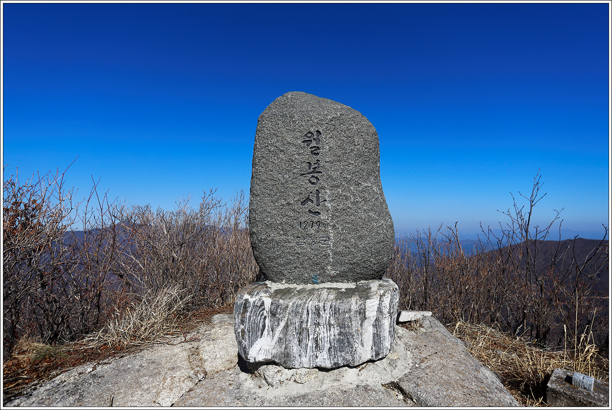 ▼ 드디어 월봉산 정상에 올랐다. 월봉산이라는 이름은 "달 월(月), 봉우리 봉(峰)" 자로서, '산봉우리가 달처럼 생겼다'고 하여 부르게 되었다고 한다. 오늘 같은 날씨도 만나기 힘드니 다시 한번 주변 조망을 해 보기로 한다.