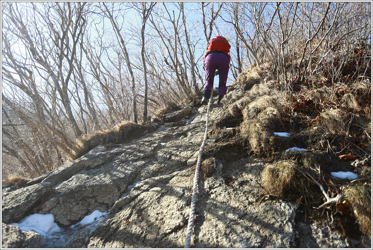 ▼ 로프도 여러번 잡게 되는 코스다. 위험한 등로가 곳곳에 도사리고 있으므로 한번 실수는 역시 큰 사고로 이어질 수 있다.