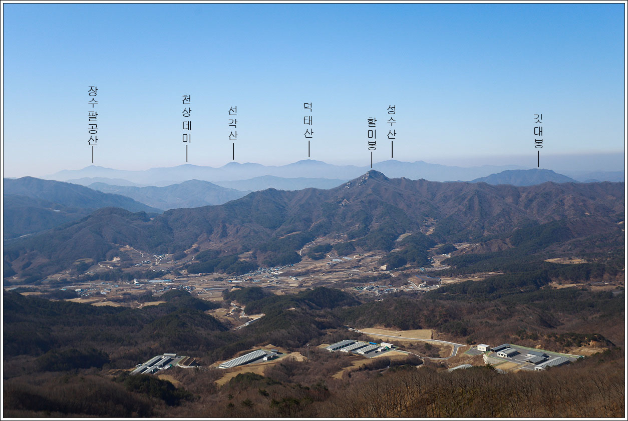 ▼ 남쪽 방향의 대봉산(1,252m)도 당겨 본다.