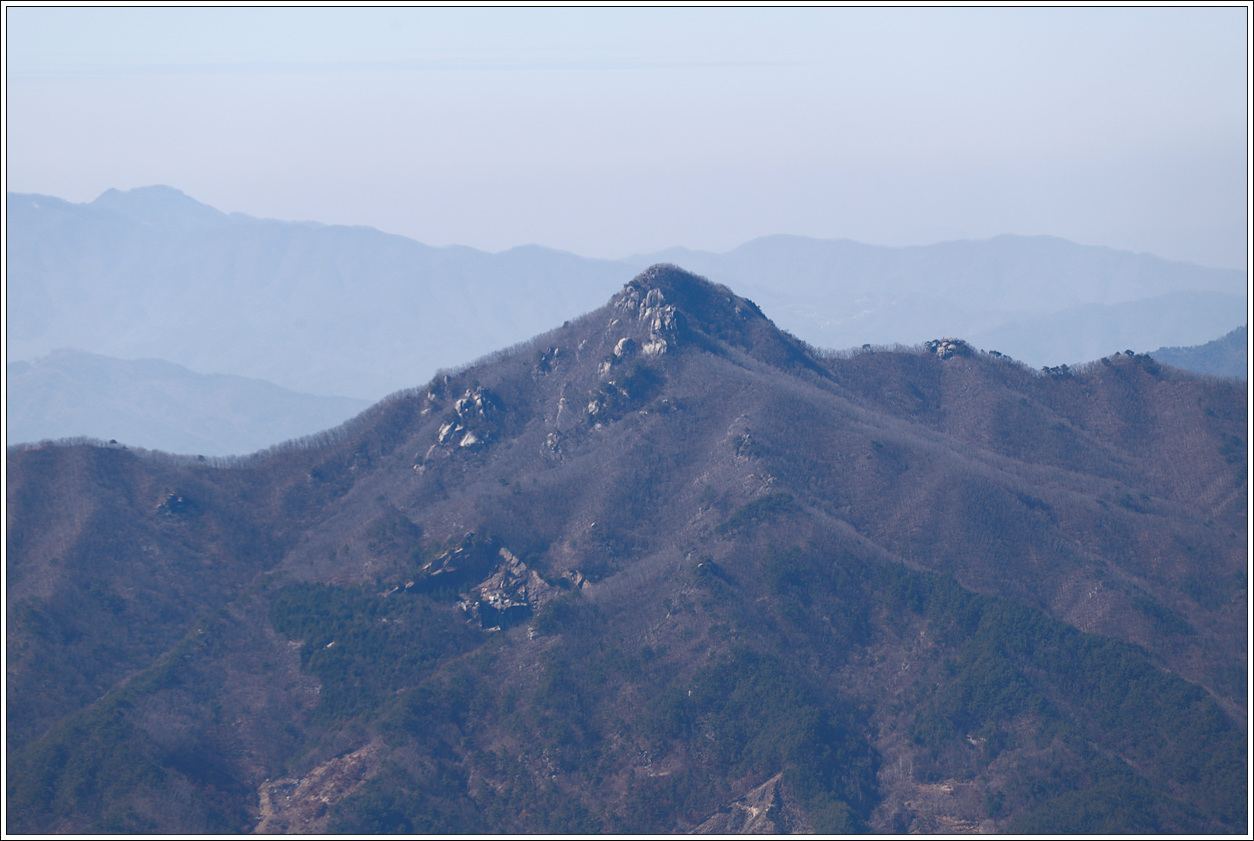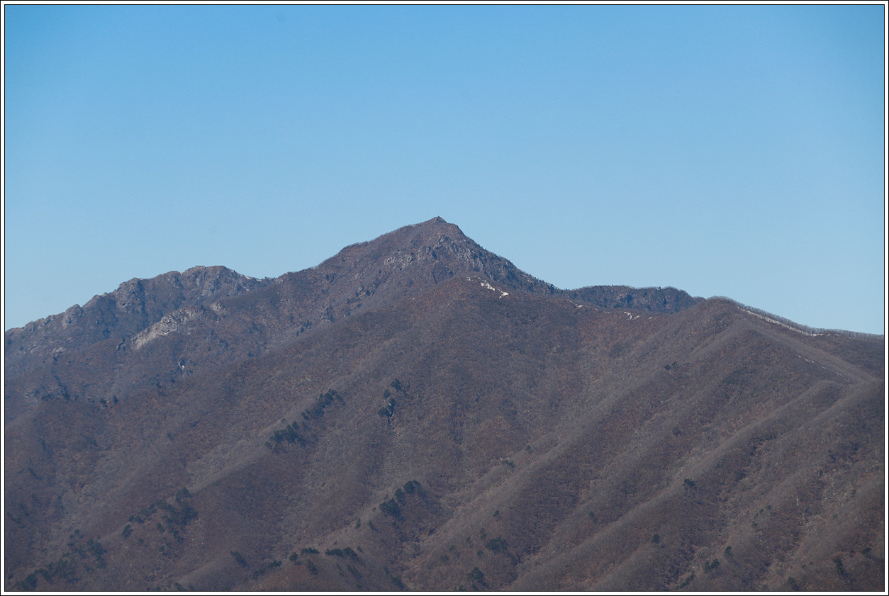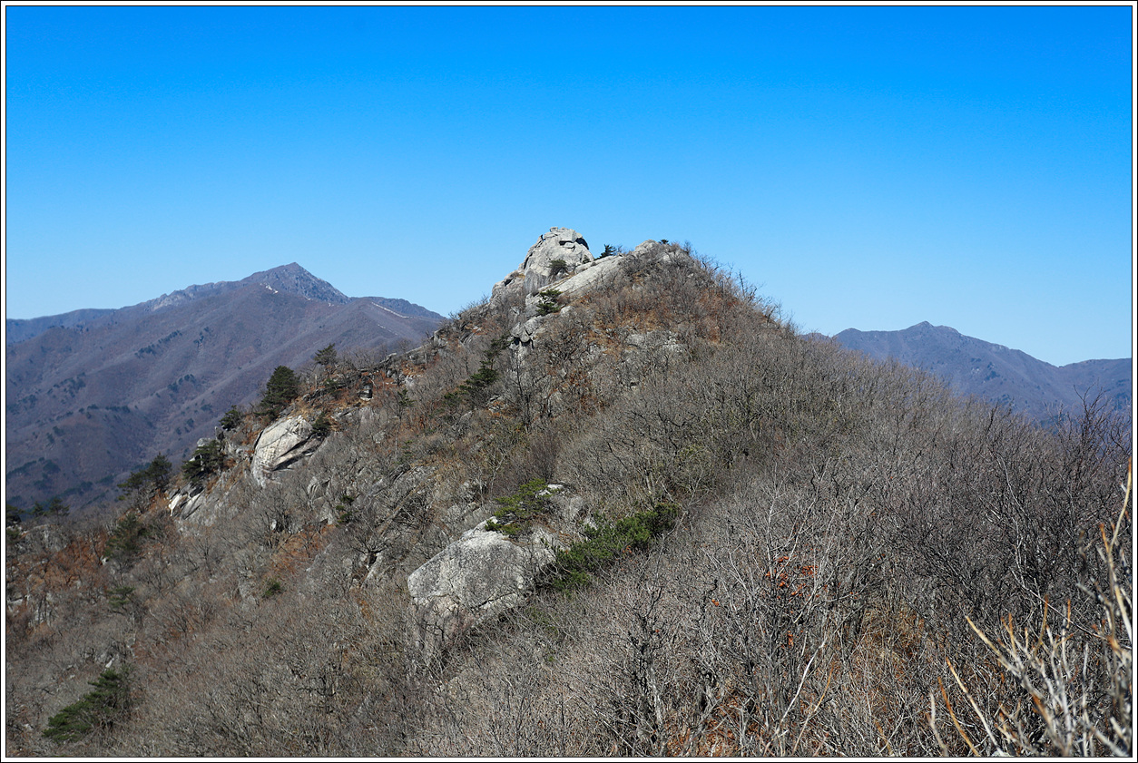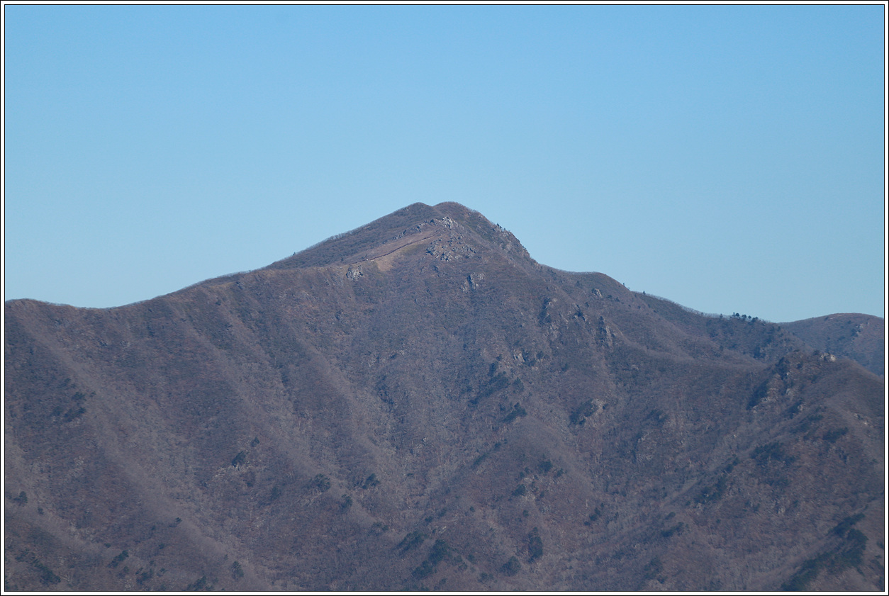 ▼ 정상에서 망원렌즈로 당겨 본 수리덤(칼날봉)과 능선...