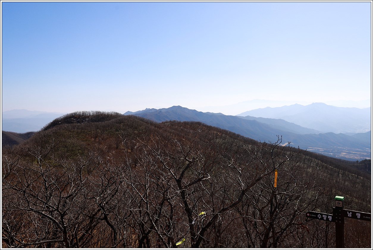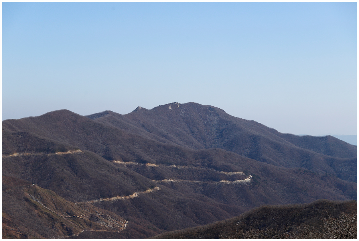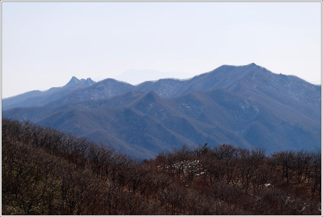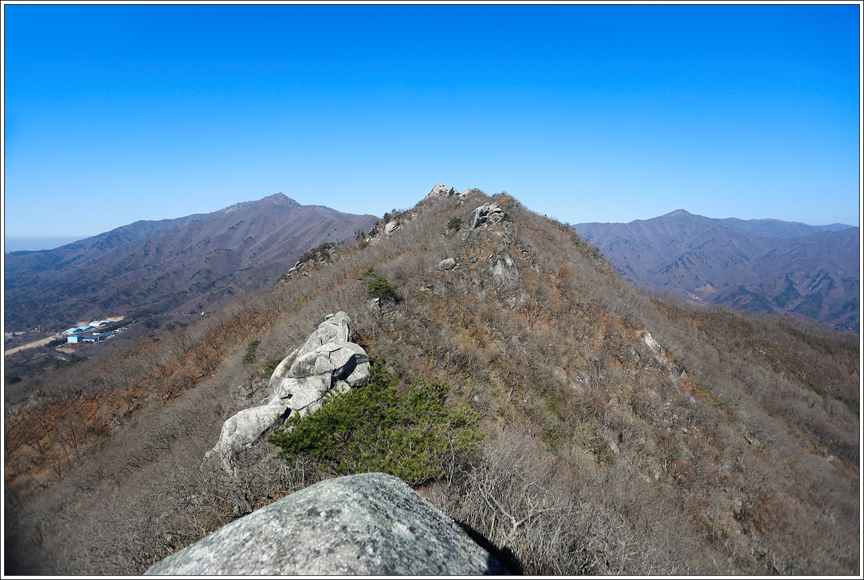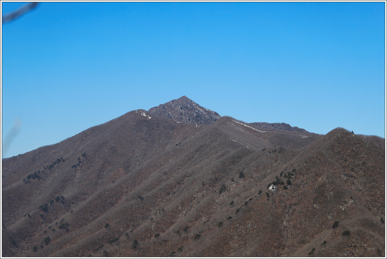 ▼ 정상에서 망원렌즈로 당겨 본 수리덤(칼날봉)과 능선...
