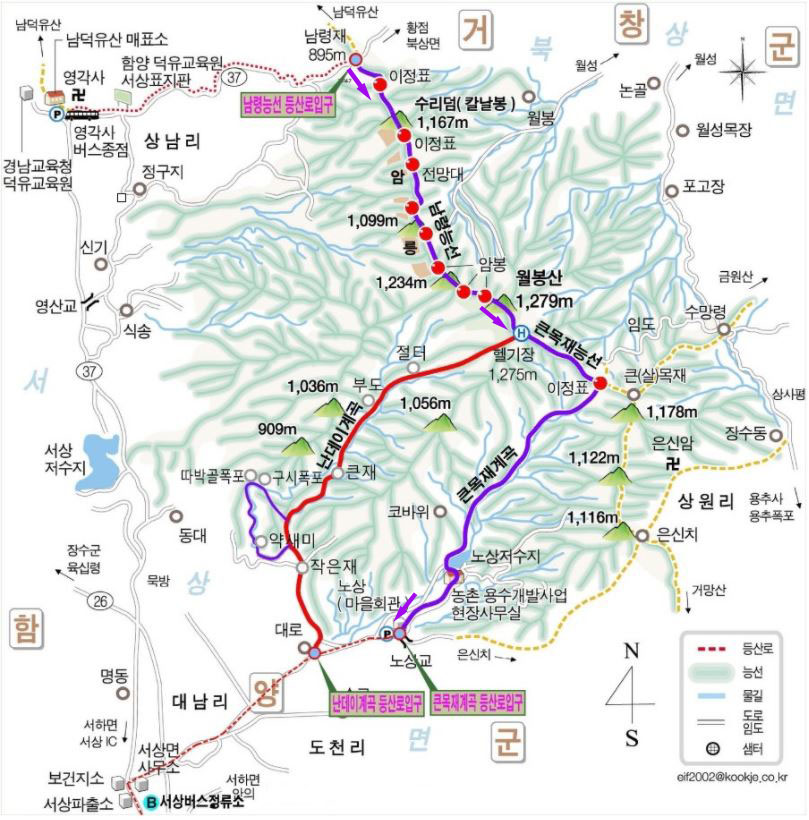 ♣ 소재지: 들머리- 경남 함양군 서상면 상남리 산 224-5(남령재), 정상-경남 함양군 서상면 대남리, 날머리-서상면 대남리 282(노상마을회관)