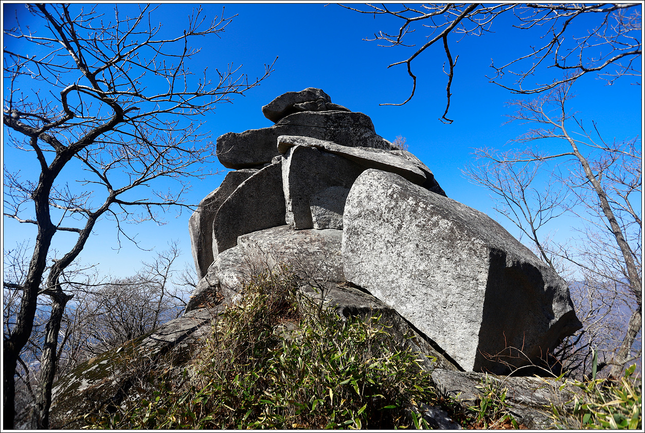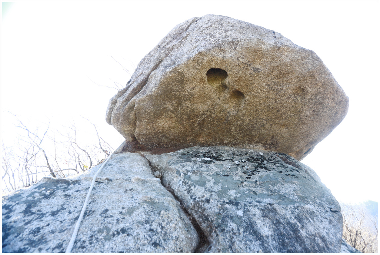 ▼ 누룩덤에 도착, 모양이 마치 누룩더미를 쌓은 여러 층의 탑처럼 생겼다고 하여 '누룩덤' 이라고 불린다는데 기백산의 누룩덤이 책을 쌓아 놓은 것 같다하여 책바위라고도 하는데 그곳에 비할 바가 못 된다.