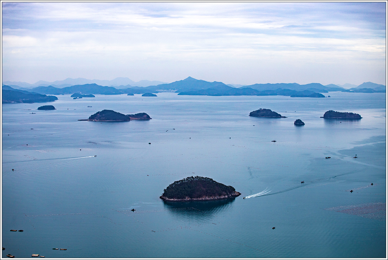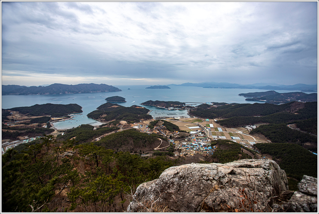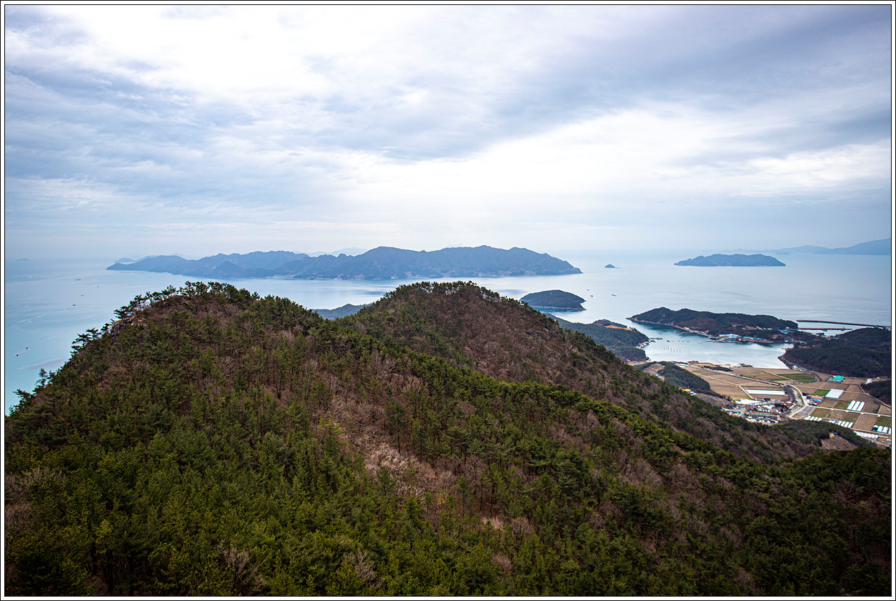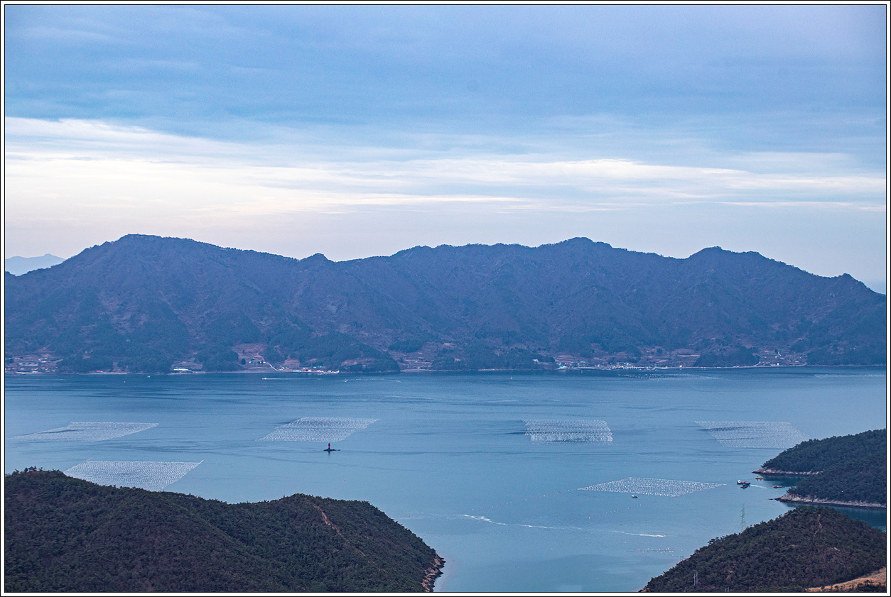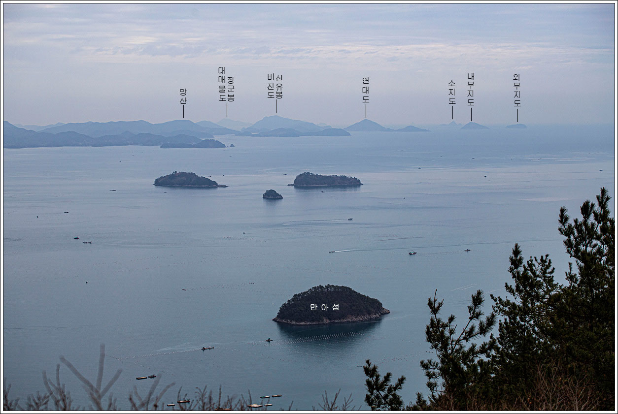 ▼ 바로 앞은 자란도이고 작년에 공지되었으나 거류산과 함께 가보지 못한 멀리 벽방산과 천개산도 눈에 들어오고...
