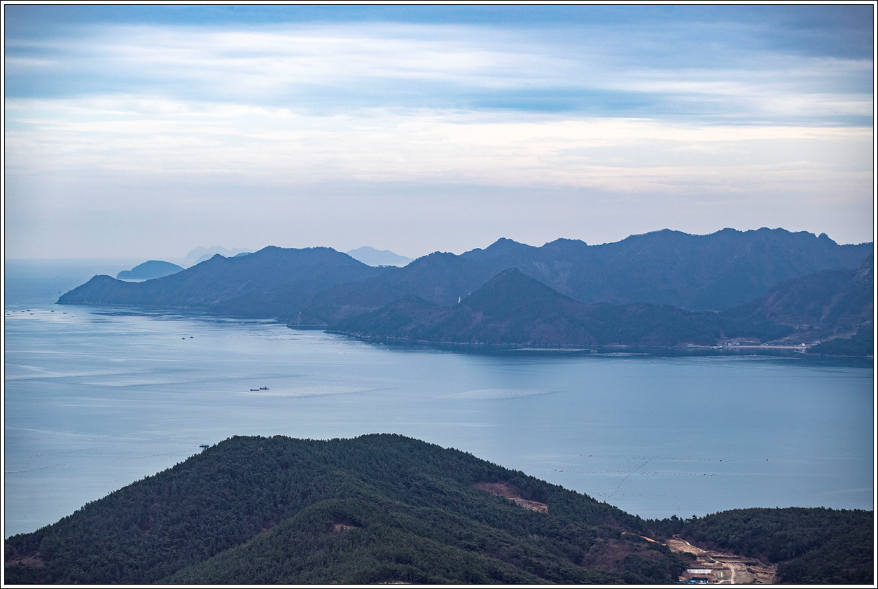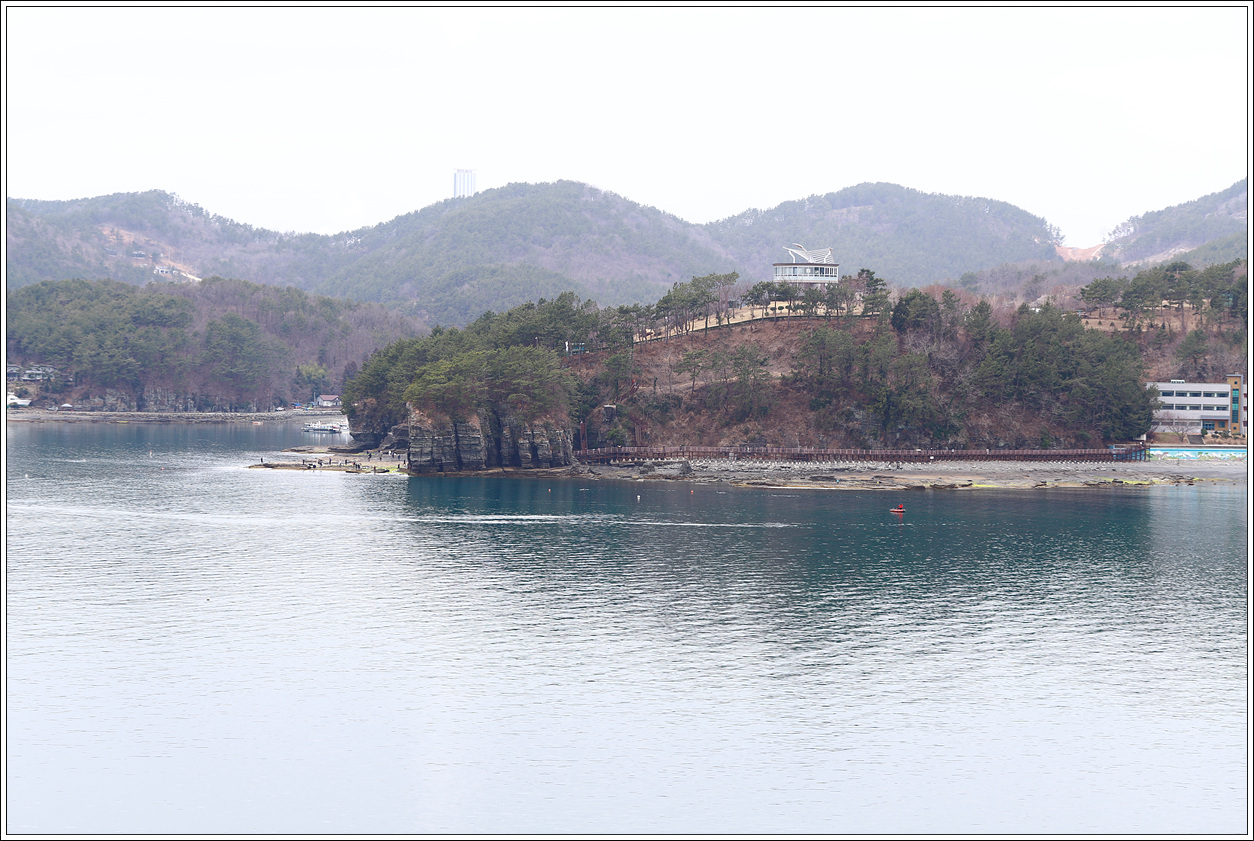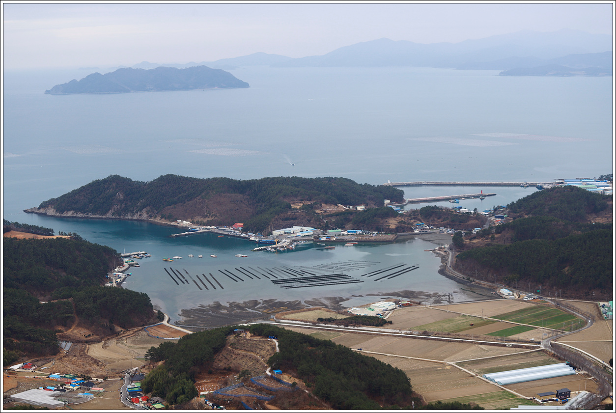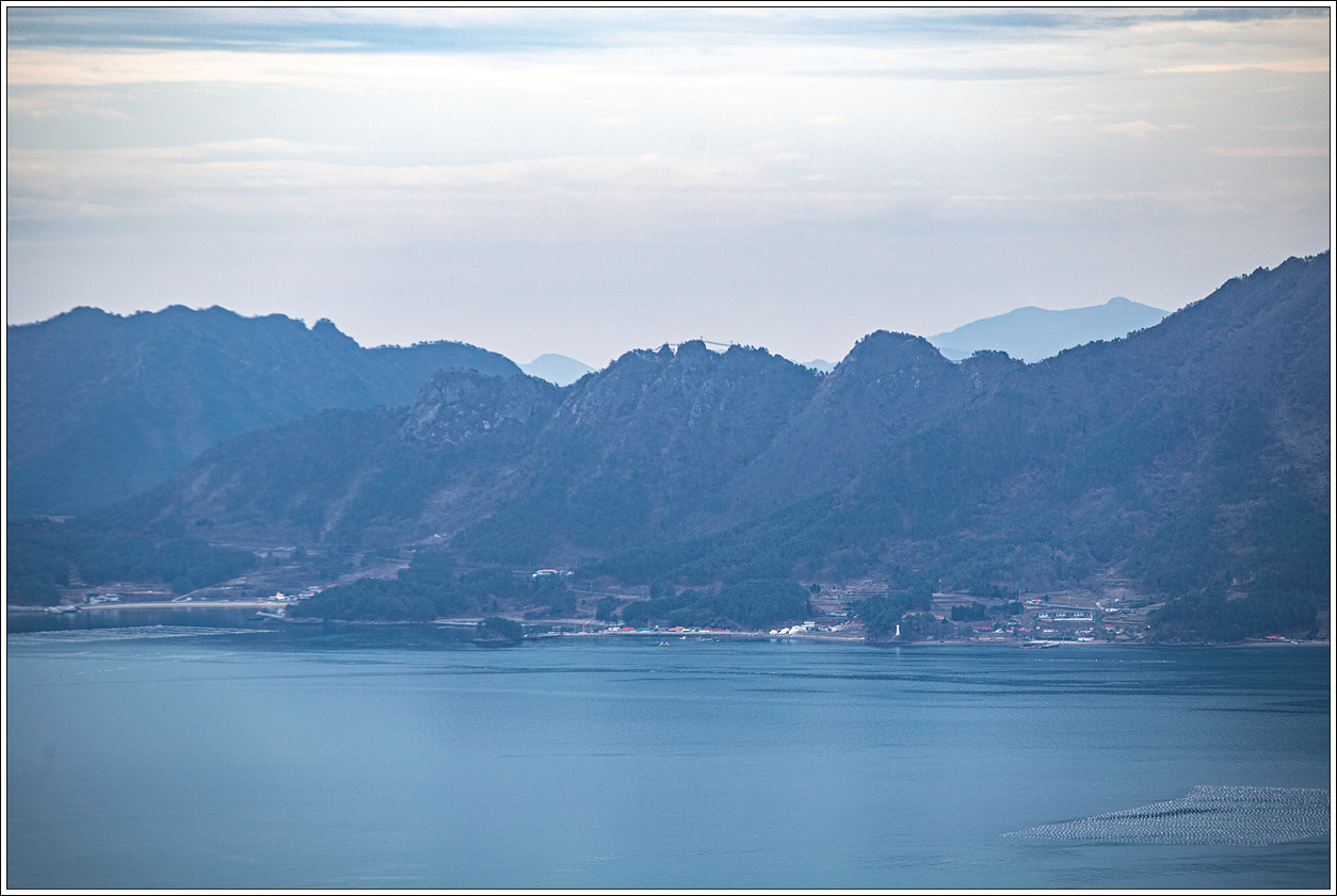 ▼ 왼쪽 임포항과 자란만의 풍경도 당겨 보는데 멀리 뾰족한 산은 많이 들어 본 거류산이다.