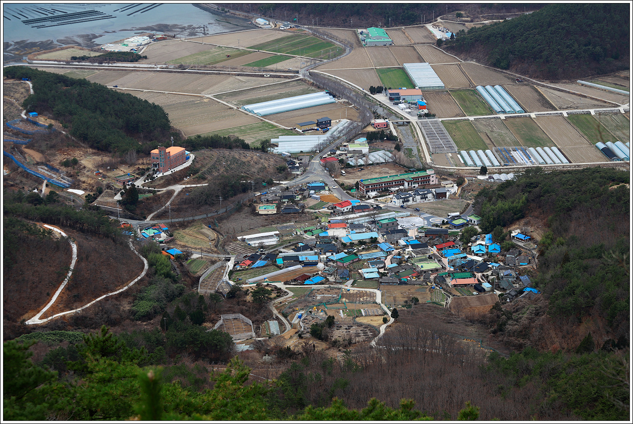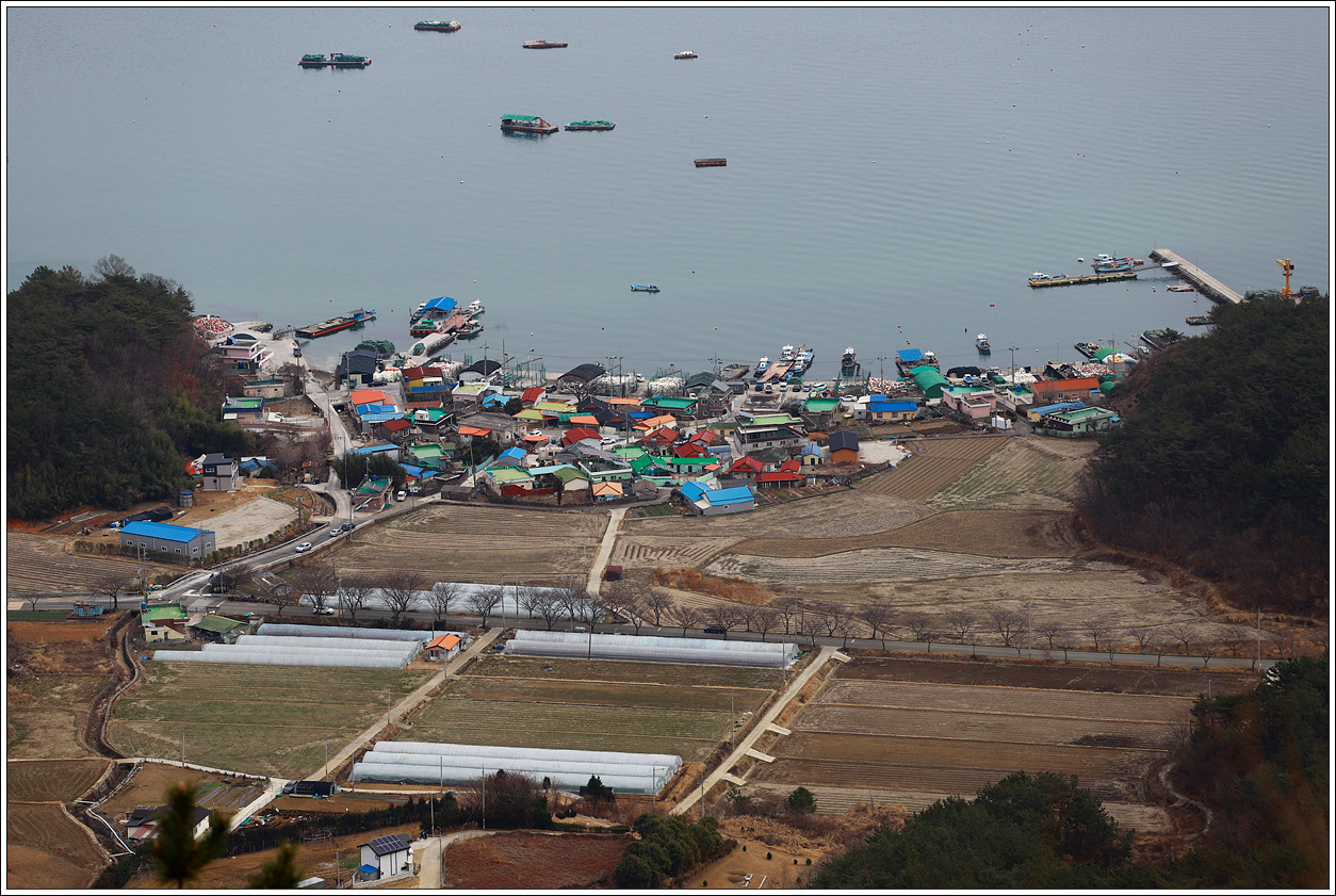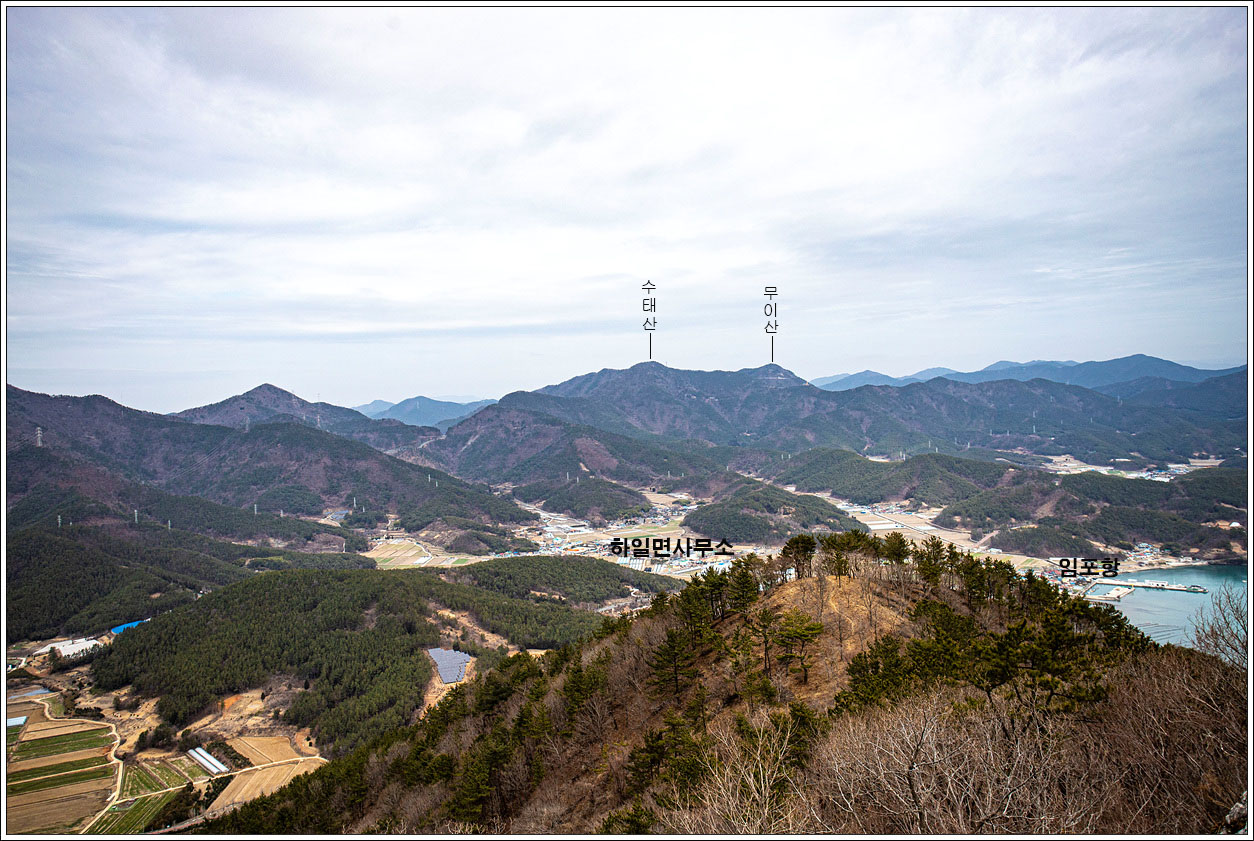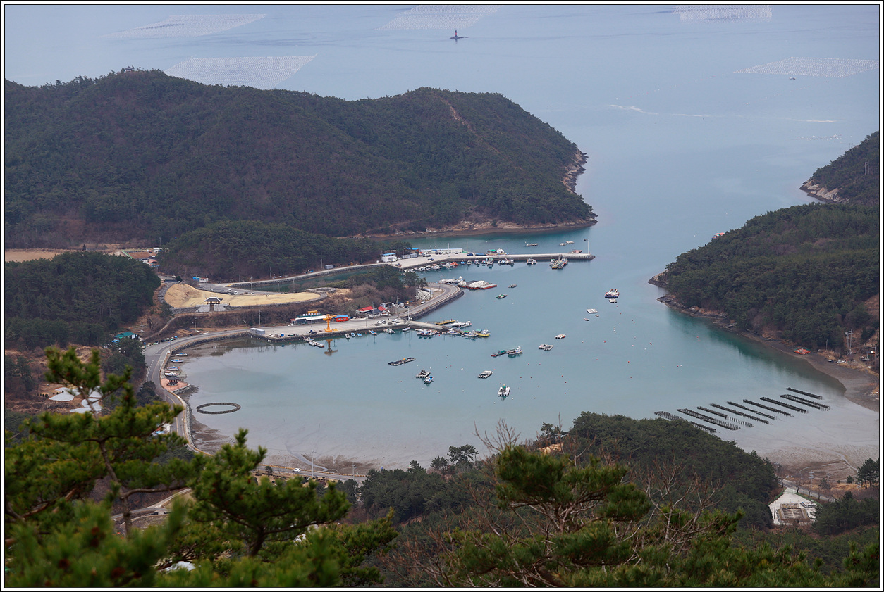 ▼ 왼쪽 임포항과 자란만의 풍경도 당겨 보는데 멀리 뾰족한 산은 많이 들어 본 거류산이다.