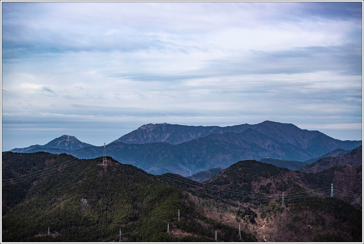 ▼ 망원렌즈로 당겨 본 남해군립공원인 호구산과 송등산, 오른쪽 괴음산...