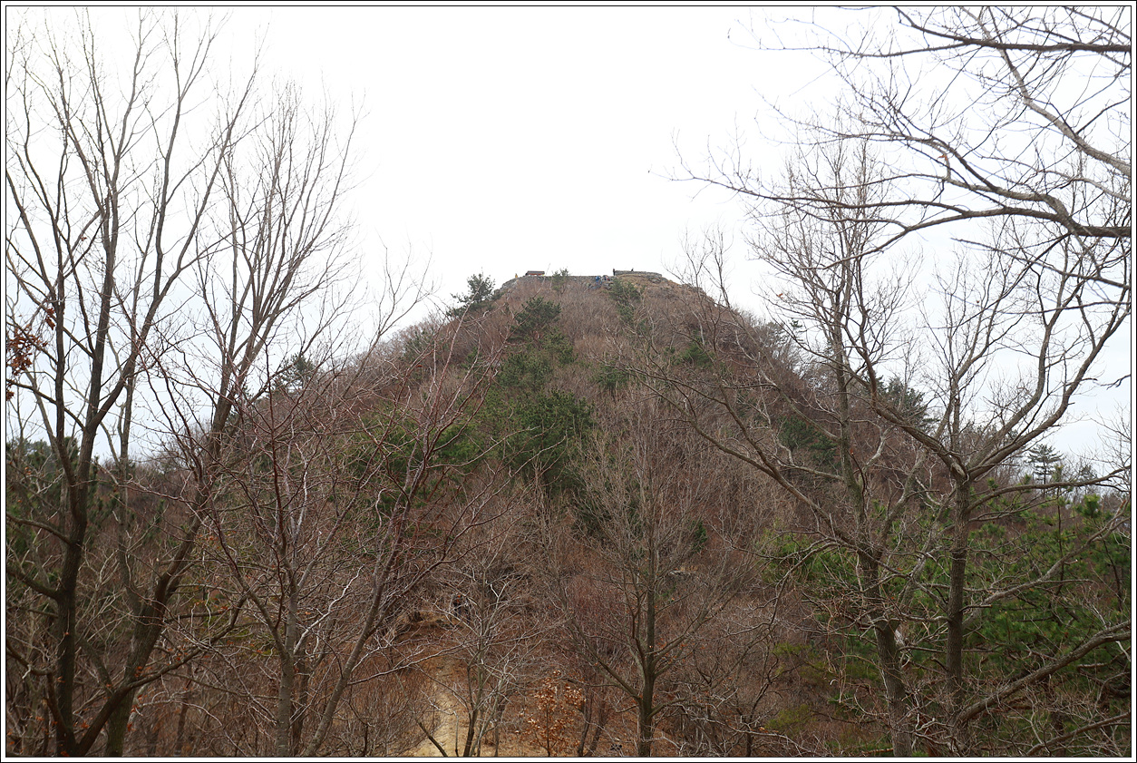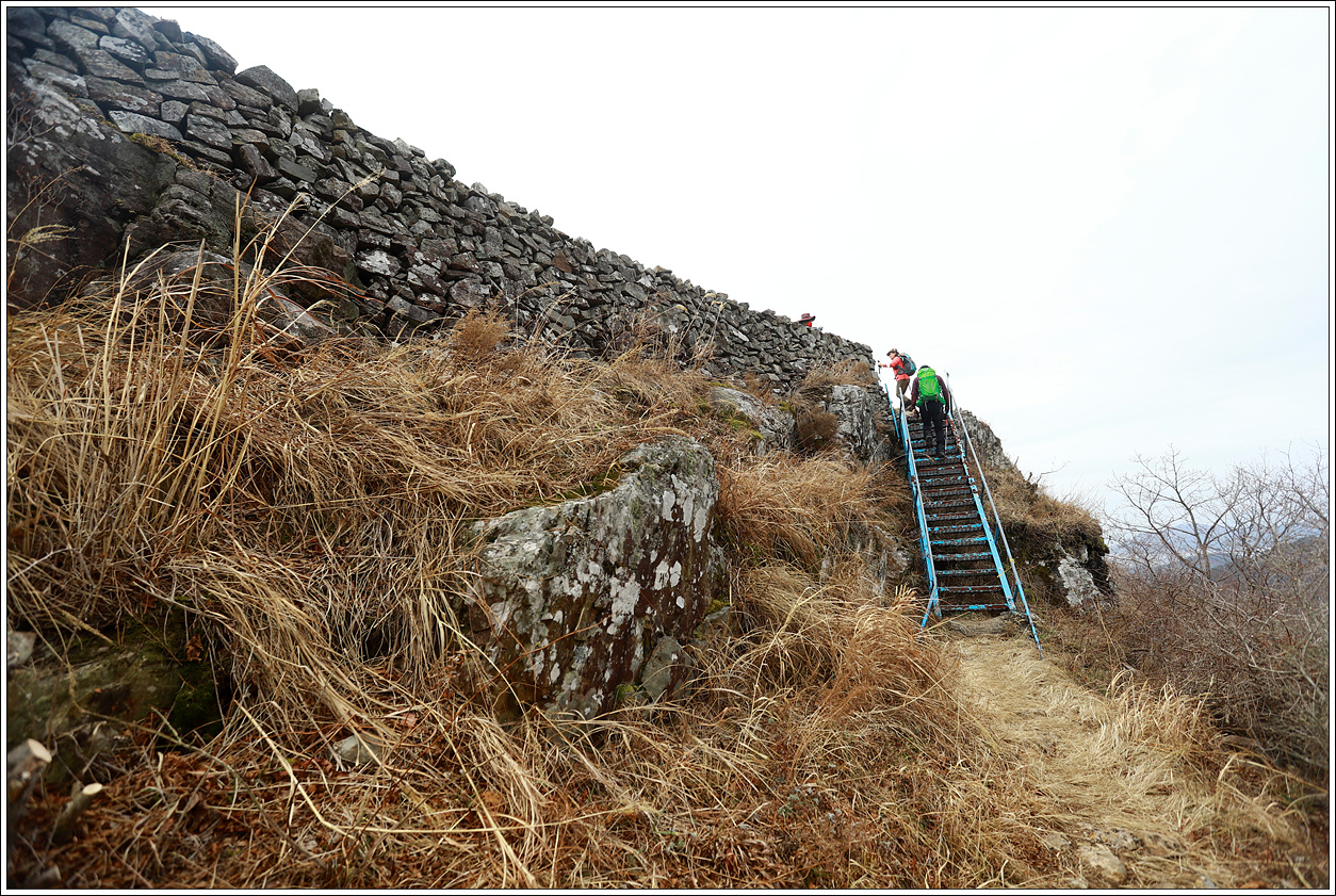▼ 드디어 정상에 다다랐고 정상은 성벽처럼 돌담을 쌓아 놓아 이례적이다.