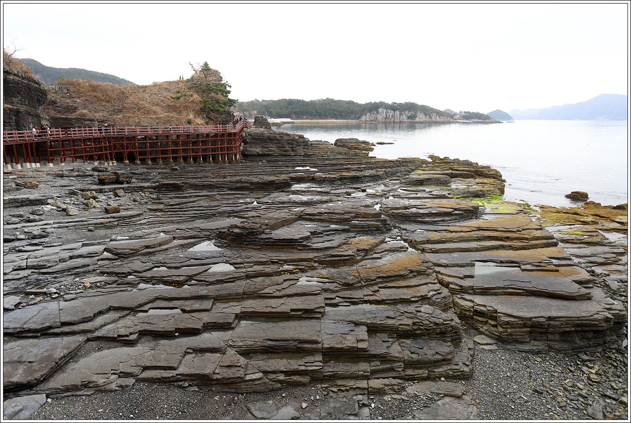 ▼ 영겁의 세월속에 켜켜이 쌓아 놓은 듯한 해변의 암석이 신비롭기만 하다.