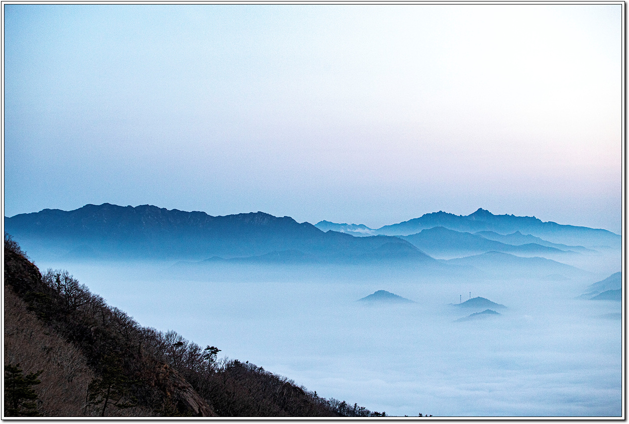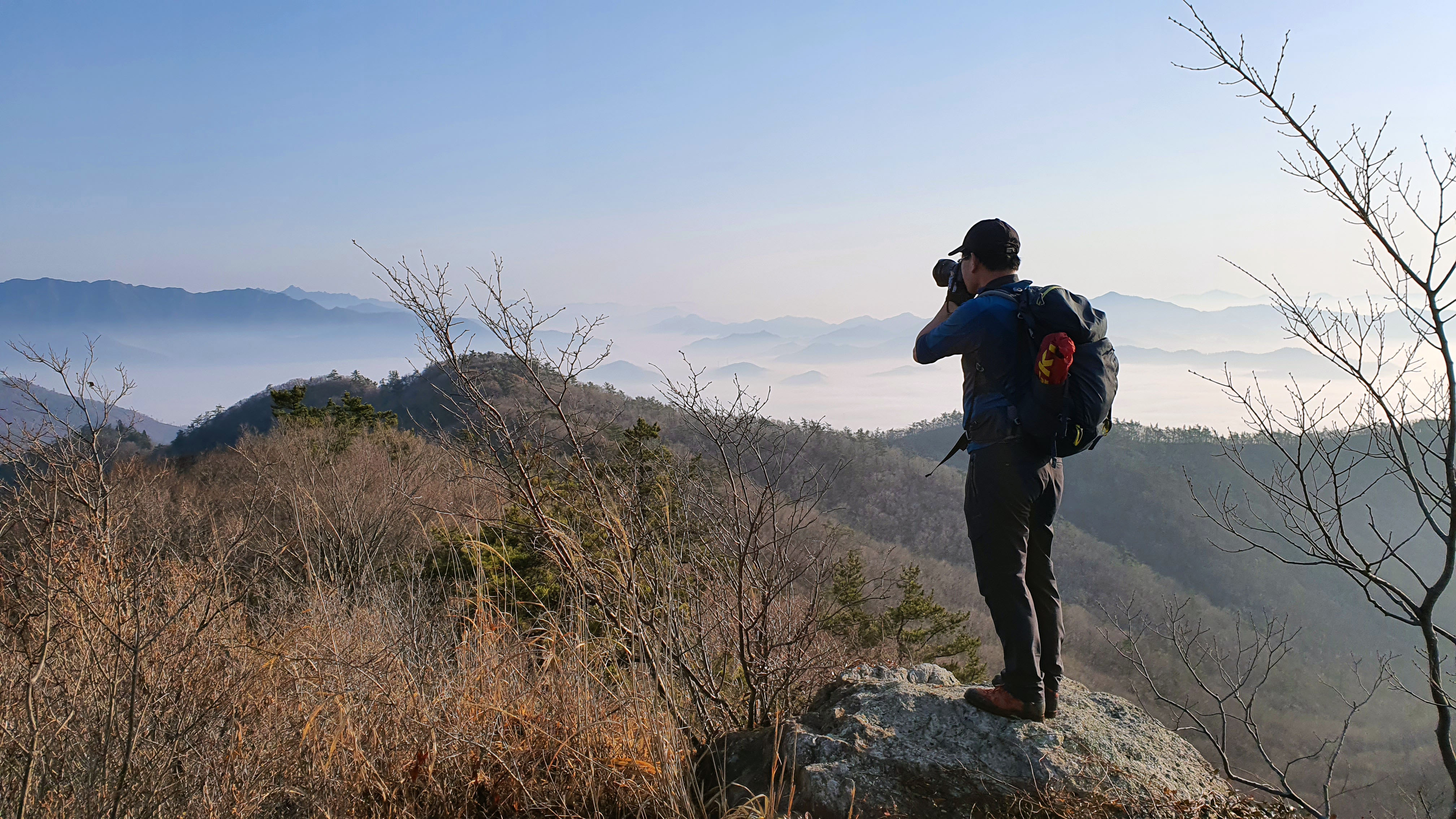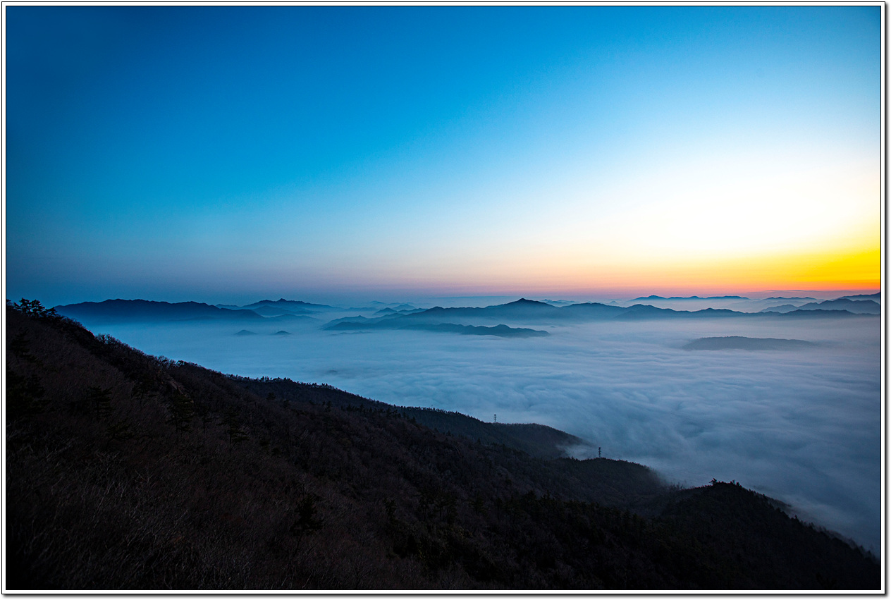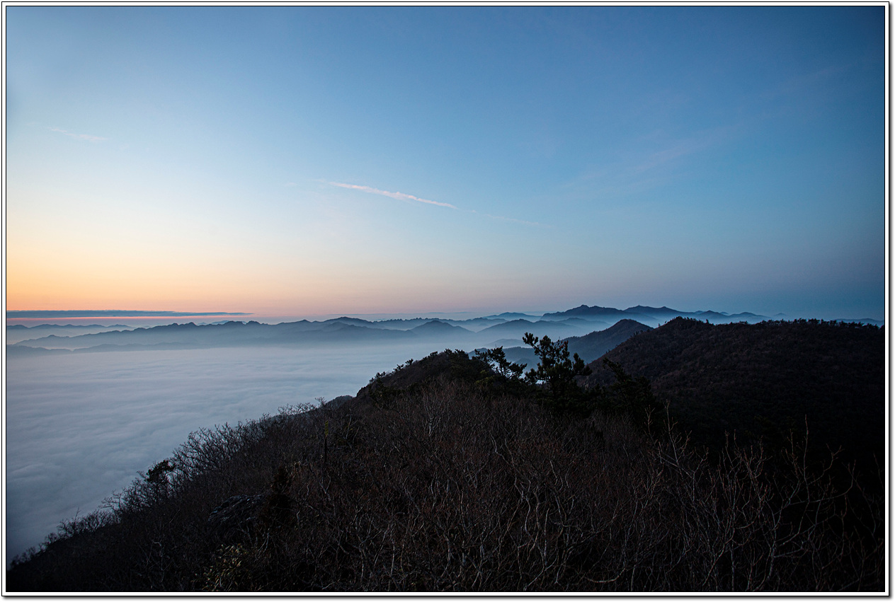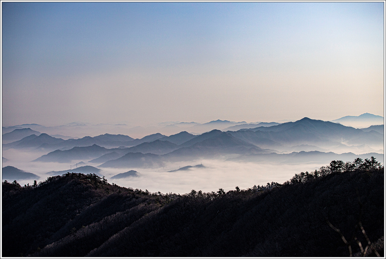 어젯밤까지 비가 내렸고 혹시나 운해를 볼 수 있지 않을까 내심 기대를 했었는데 딱 맞아떨어진 것이다. 이런 풍경을 또 언제 볼 수 있을까 싶어 일출 때까지 기다려 보자는 심산으로 후미 몇 명이서 동이 틀 때까지 기다려 보기로 한다.