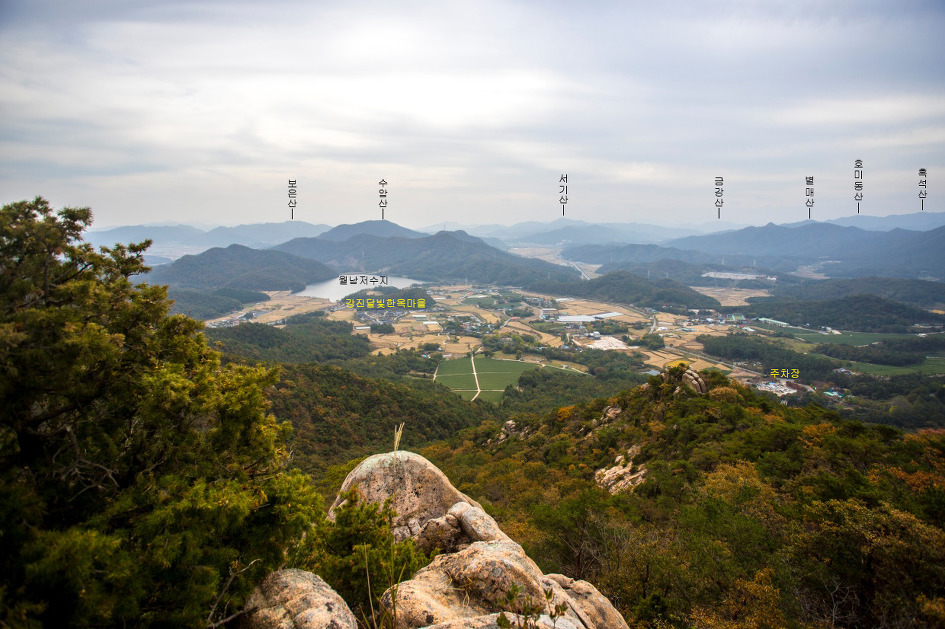 ▼ 북쪽 방향으로 흑석산과 그 뒤로 월출산을 다시 한번 살펴본다.