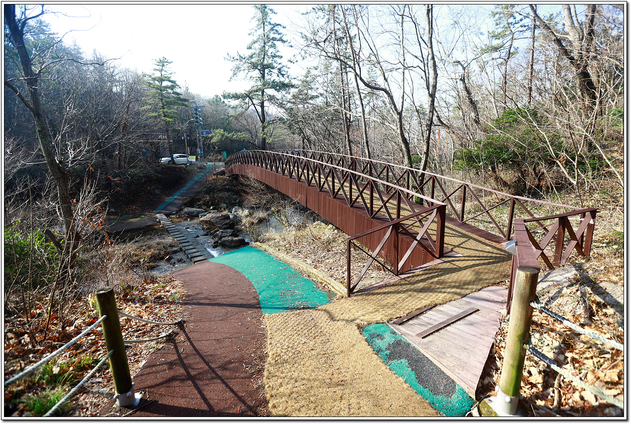 ▼ 계곡물 소리를 들으며 징검다리도 건너고 이러한 다리도 건너면서 산행마감 시간을 보니 알뜰하게 시간을 활용한 것 같다.