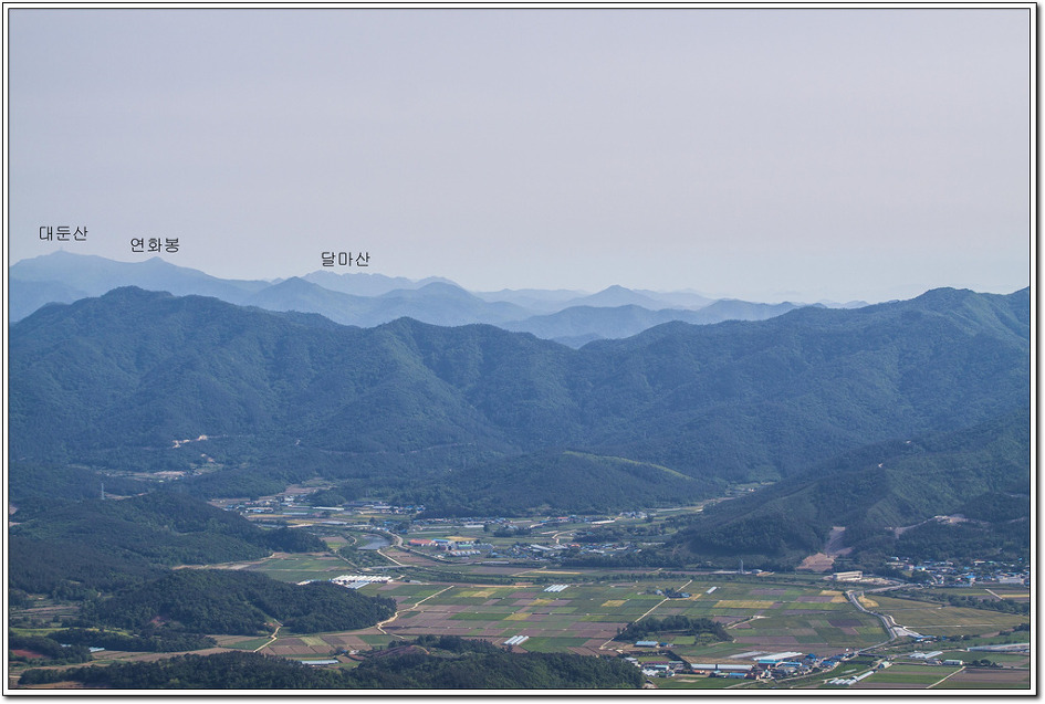 ▼ 2017년 5월 13일 올랐었던 흑석산에서 바라봤던 풍경인데 4년 후에 이렇게 맞은 편에서 흑석산을 바라보리라고는 생각지도 못했던 일이다. 바로 앞 산이 삼봉, 깃대봉과 만대봉으로 이어진 능선이다.