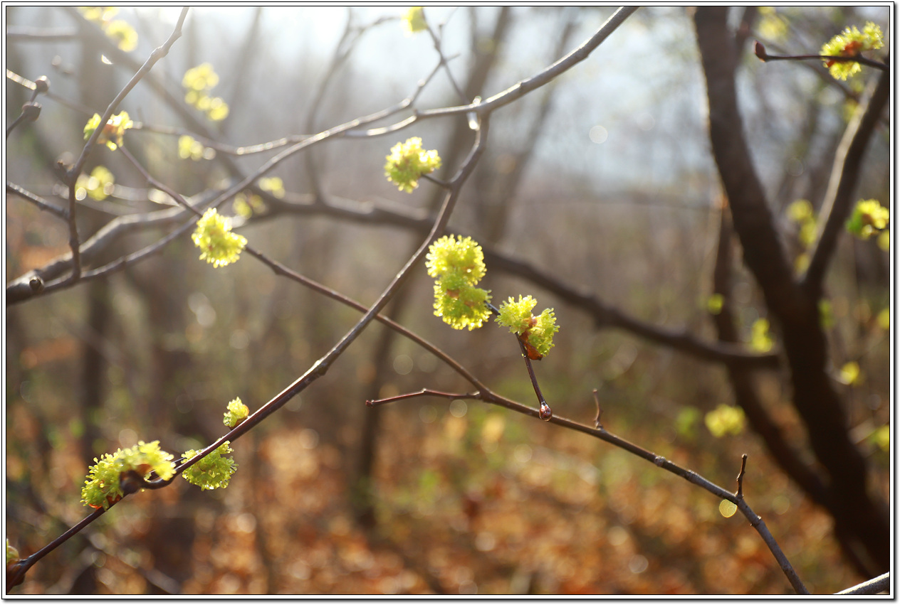 ▼ 꽃 수술이 빨간 올괴불나무와는 달리 노란색인 길마가지나무도 앞 다투어 꽃을 피웠다.