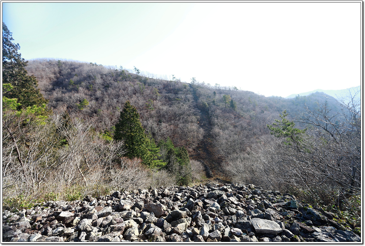 ▼ 이곳에서 금강산 정상을 올랐다가 다시 내려와서 좌틀하여 본격적인 하산길에 접어 드는데 벌써 왼쪽으로 하산하는 이들이 있으니 나하고는 적어도 30분 이상 속도가 차이가 나는 것 같다.