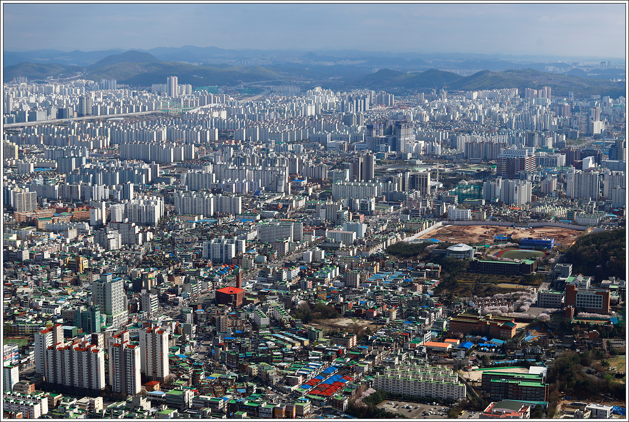 ▼부평구 일대로 지붕이 파란 건물은 부평GM대우자동차공장이다. 10년전만해도 공장 일대에 아파트 건물이 별로 없었는데 많은 건물이 들어선 것을 볼 수있다.