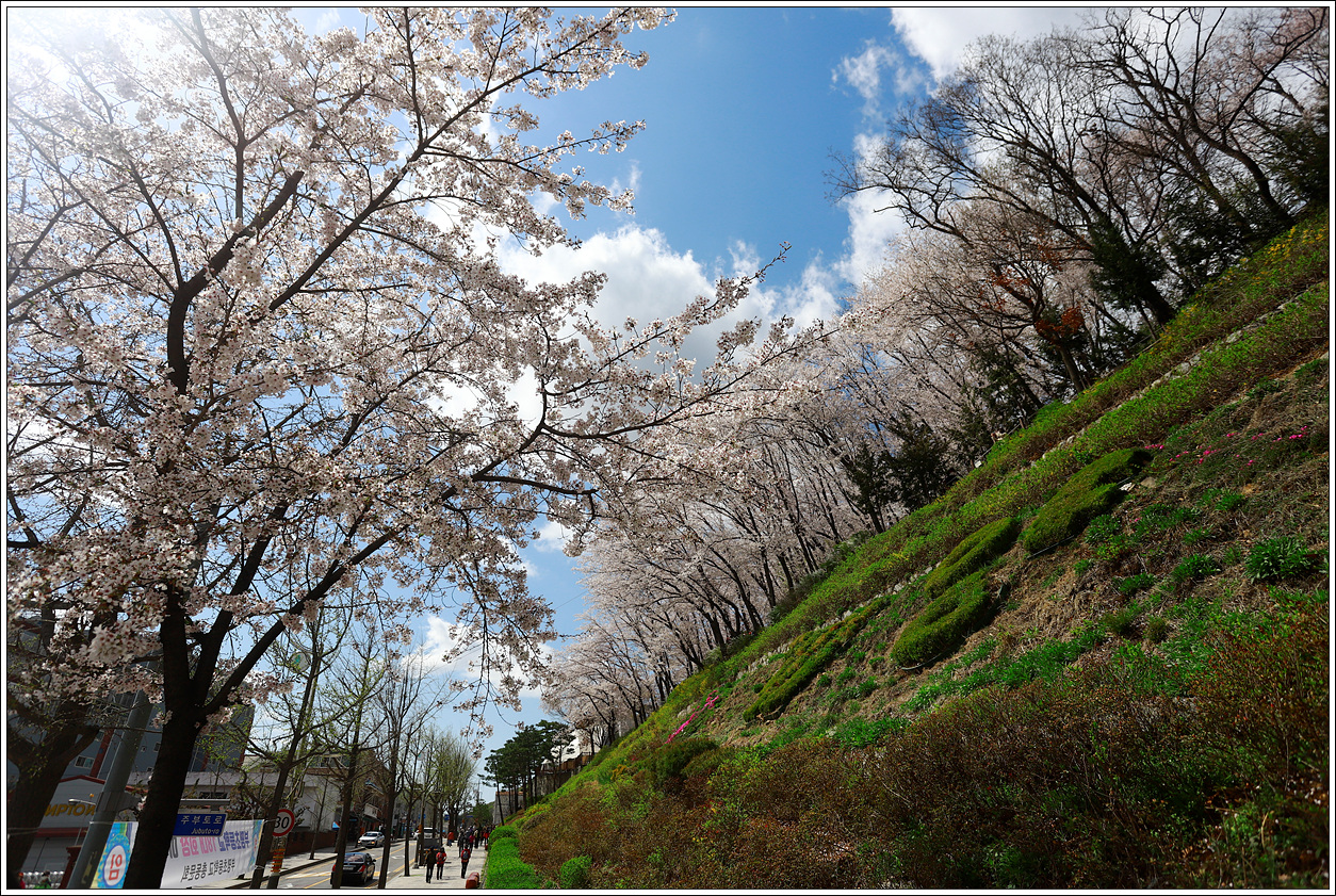 ▼ 이제는 어느 지방이든 벚나무를 많이 식재하여 도로, 아파트단지, 공원등에서 흔히 볼 수 있는 벚꽃 풍경이다.