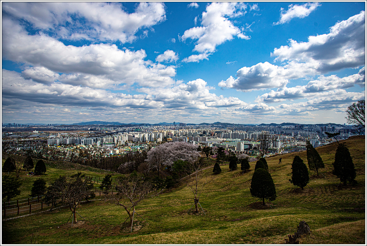▼ 전철을 타고 계산역에서 하차하여 들머리에 도착하니 주변은 온통 벚꽃으로 만개해 공원과 산을 찾은 객들을 반긴다.