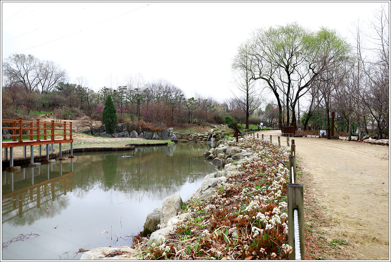 ▼ 야자수 매트로 단장한 등로가 산책하기 편해 보이고 복사꽃등 주변이 봄으로 가득한 제법 운치가 있는 풍경이다.
