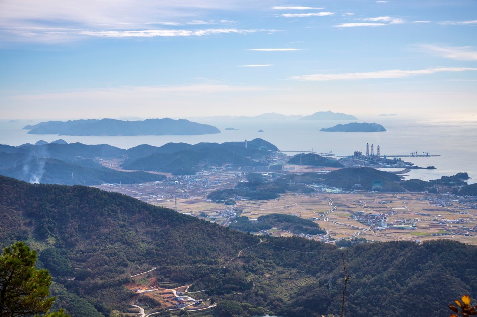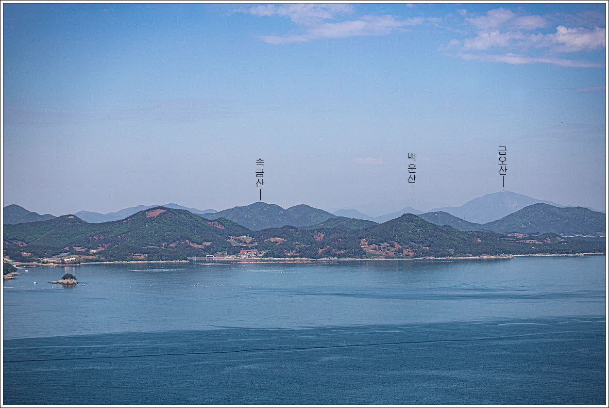 ▼ 북서쪽으로 창선도의 속금산, 하동의 금오산과 희미하지만 광양의 백운산까지 조망된다.