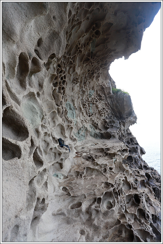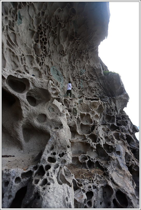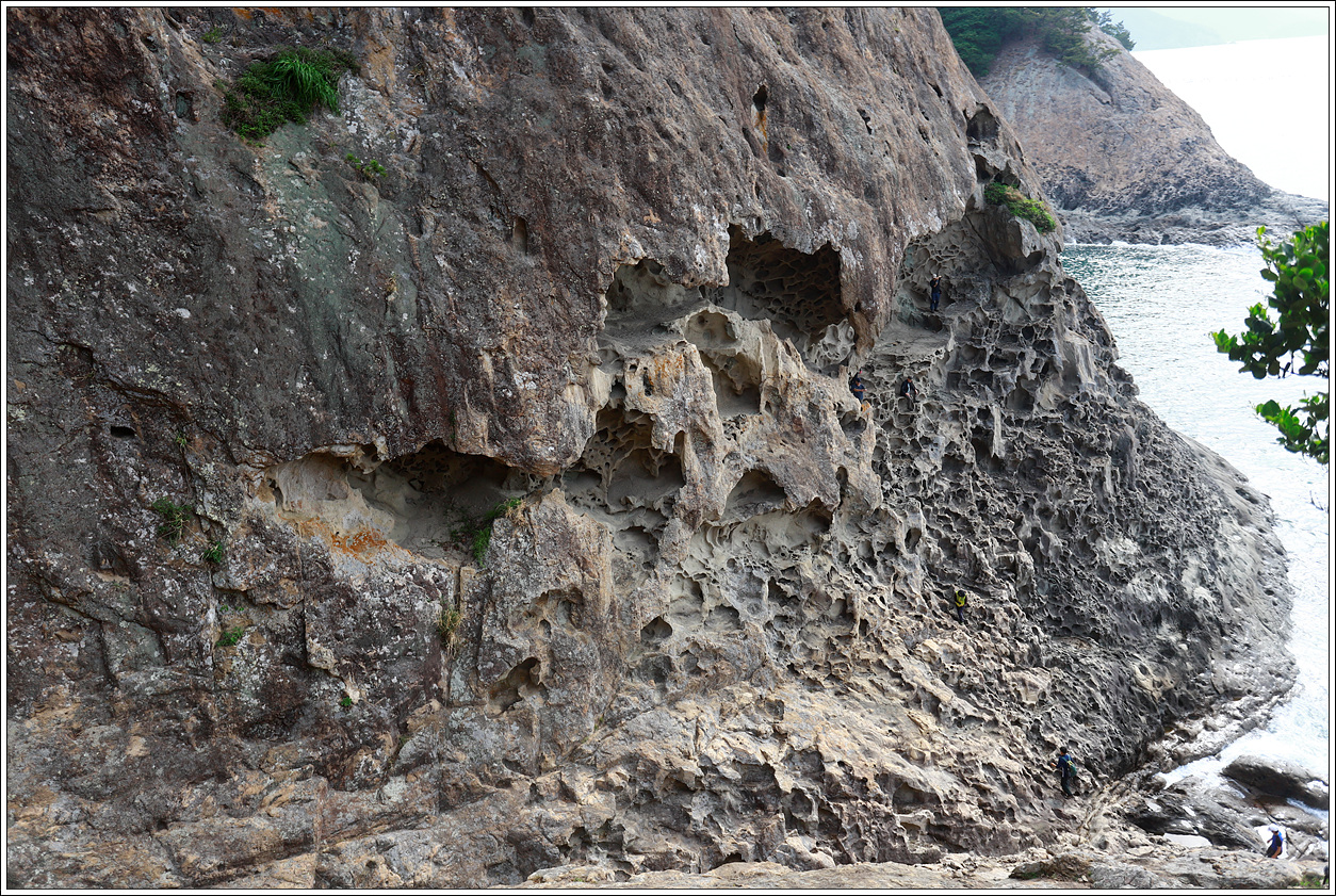 ▼ 급경사로 내려가니 나타난 해골바위...마이산의 타포니라는 지질형태가 생각난다. 영겁의 세월 동안 바닷물에 침식됐거나 풍화작용에 의해 이런 형태로 변하지 않았나 생각이 든다.