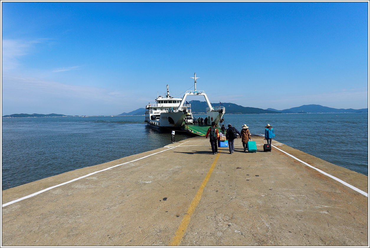 ▼ 삼보해운의 카페리호가 도착했다. 궂은 날씨지만 그래도 트레킹 하는데 문제없이 비가 잘 참아 주어 하늘에 감사한다. 난생 처음 발을 디뎌 본 볼음도는 아차도를 갈 때마다 많은 사람들이 하선하는 것을 보고 뭐가 볼 것이 있다고 가는가 의아해 했다. 그도 그럴 것이 볼음도를 당일로 갔다 온다는 것은 특별한 일이 있기 전에는 4시간 30분으로는 짧은 시간이기에 거의 1박을 해야 하므로 가고 싶어도 동기가 없어 가보지 못한 곳이다.