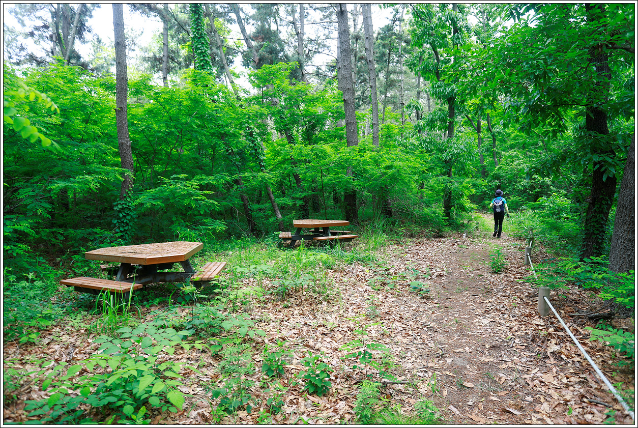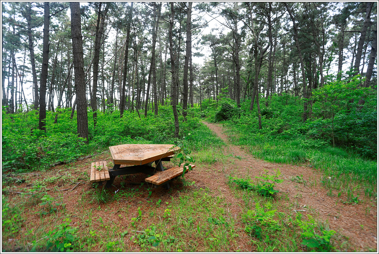 ▼ 물엄곶을 넘으며 만난 쉼터... 한적한 해송의 촉감 좋은 오솔길을 걷다보면 육지에서 걷는 산행지와는 또 다른 느낌이다.