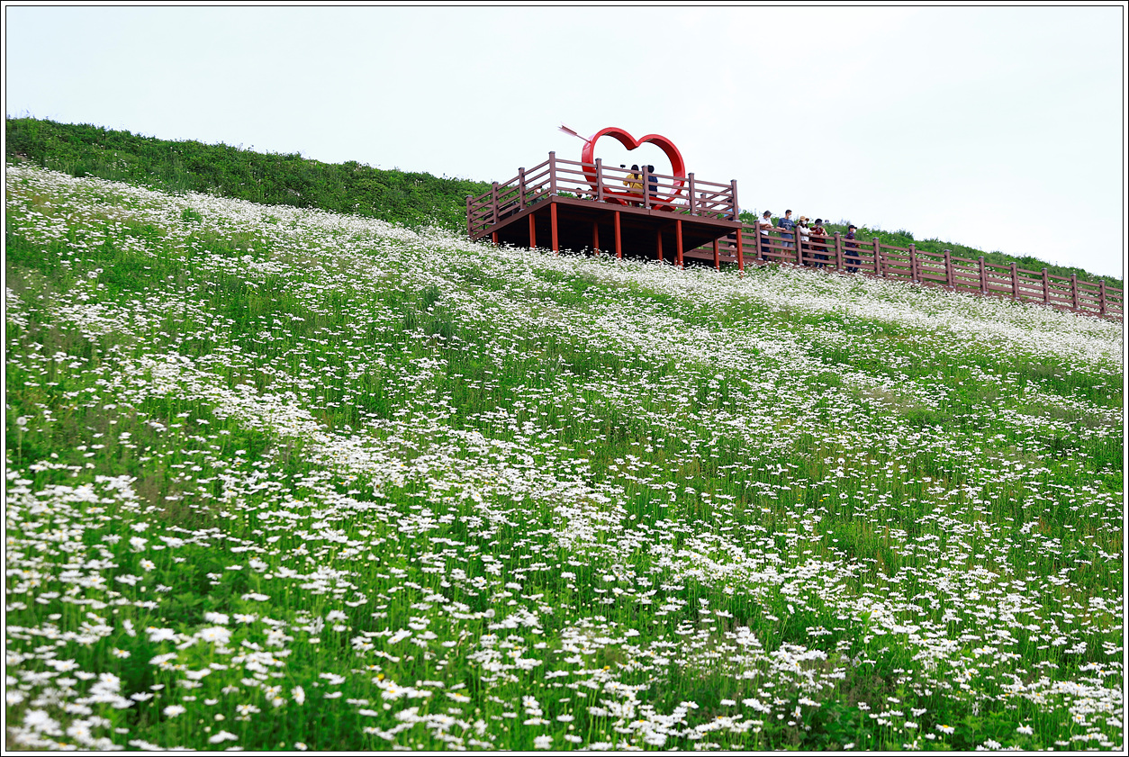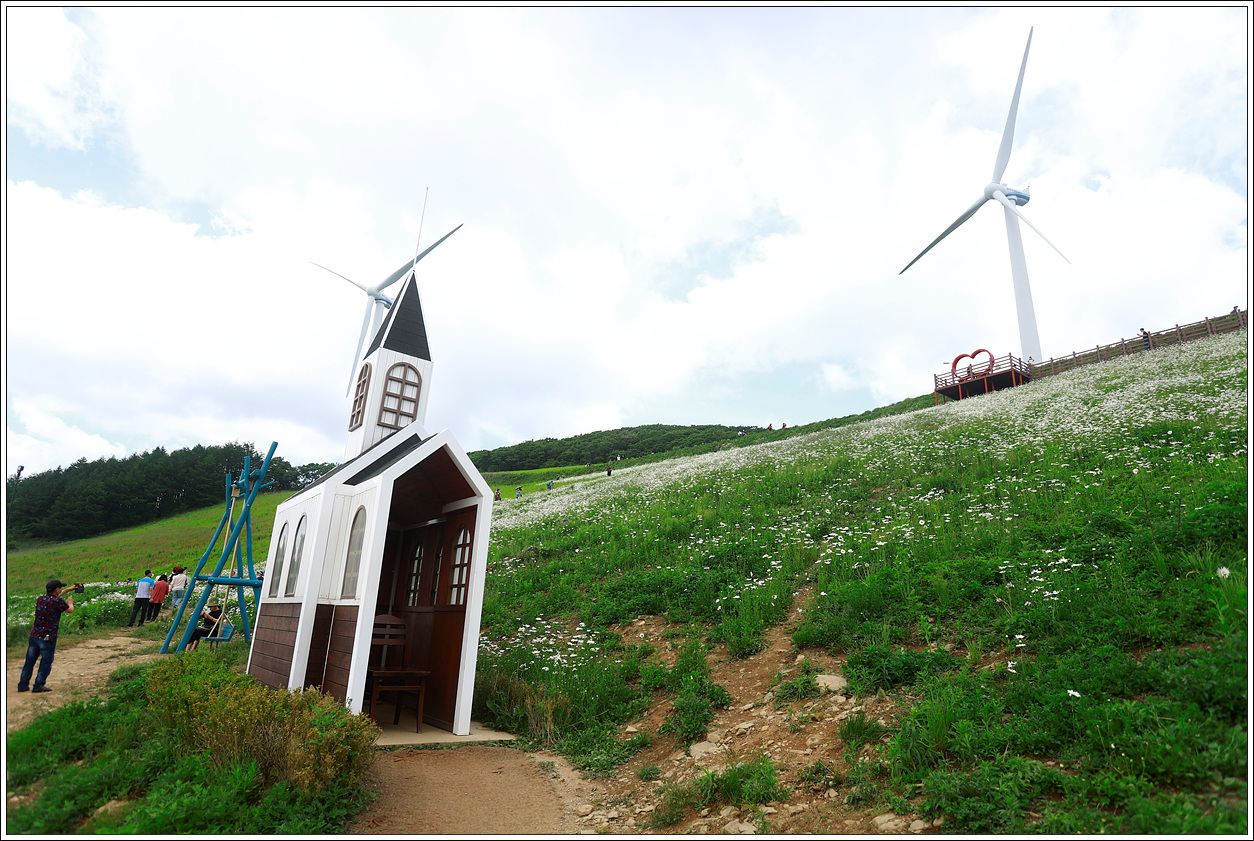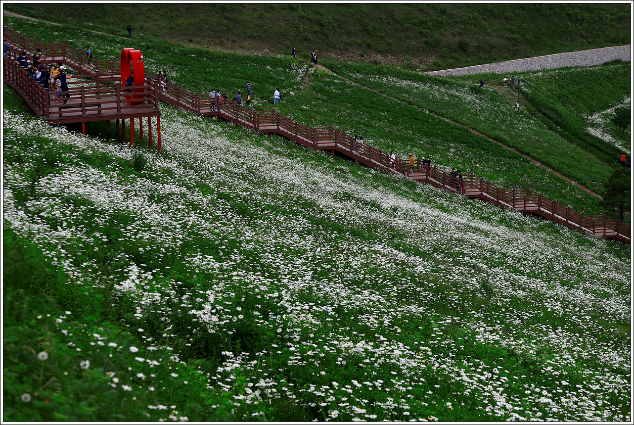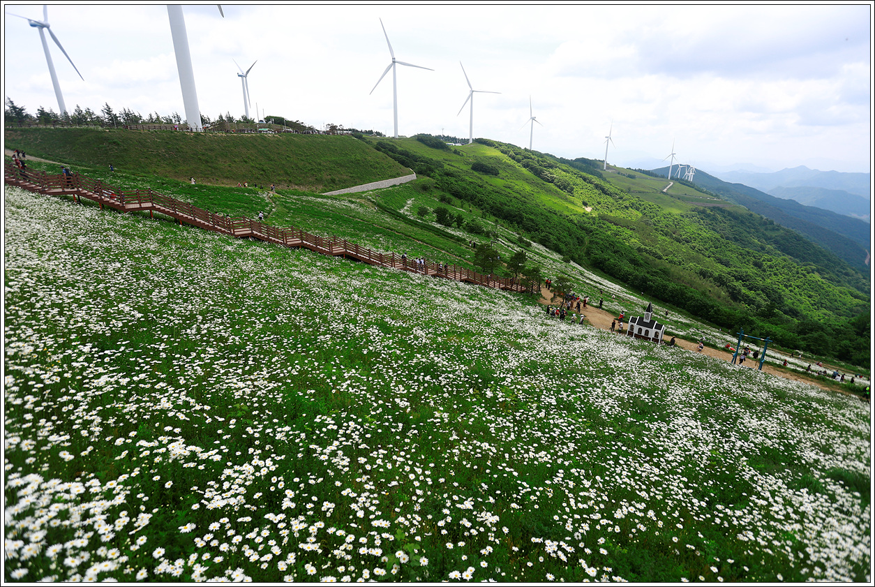 ▼ 주차장 방향에서 바라 본 육백마지기 샤스타데이지 화원의 전경...