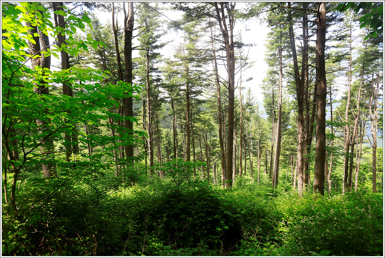 ▼ 가파른 능선을 꽤 오래 올라야 하는데 앞서 가는 사람들 중에는 옷차림이 꽃만을 보러 관광을 하러 온 것인지 제대로 오르질 못해 줄지어 있어 앞지를 수도 없는 상태라 답답하기 이를 데 없다. 그들이 쉬고 있는 틈을 타 계속 앞질러 올라가니 이러한 숲도 나오고 한 숨 돌릴 것 같다.
