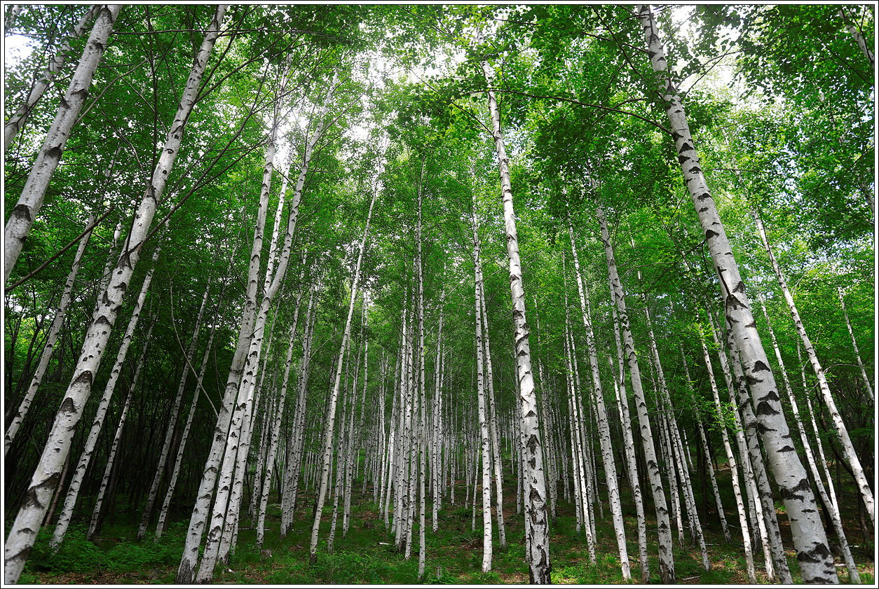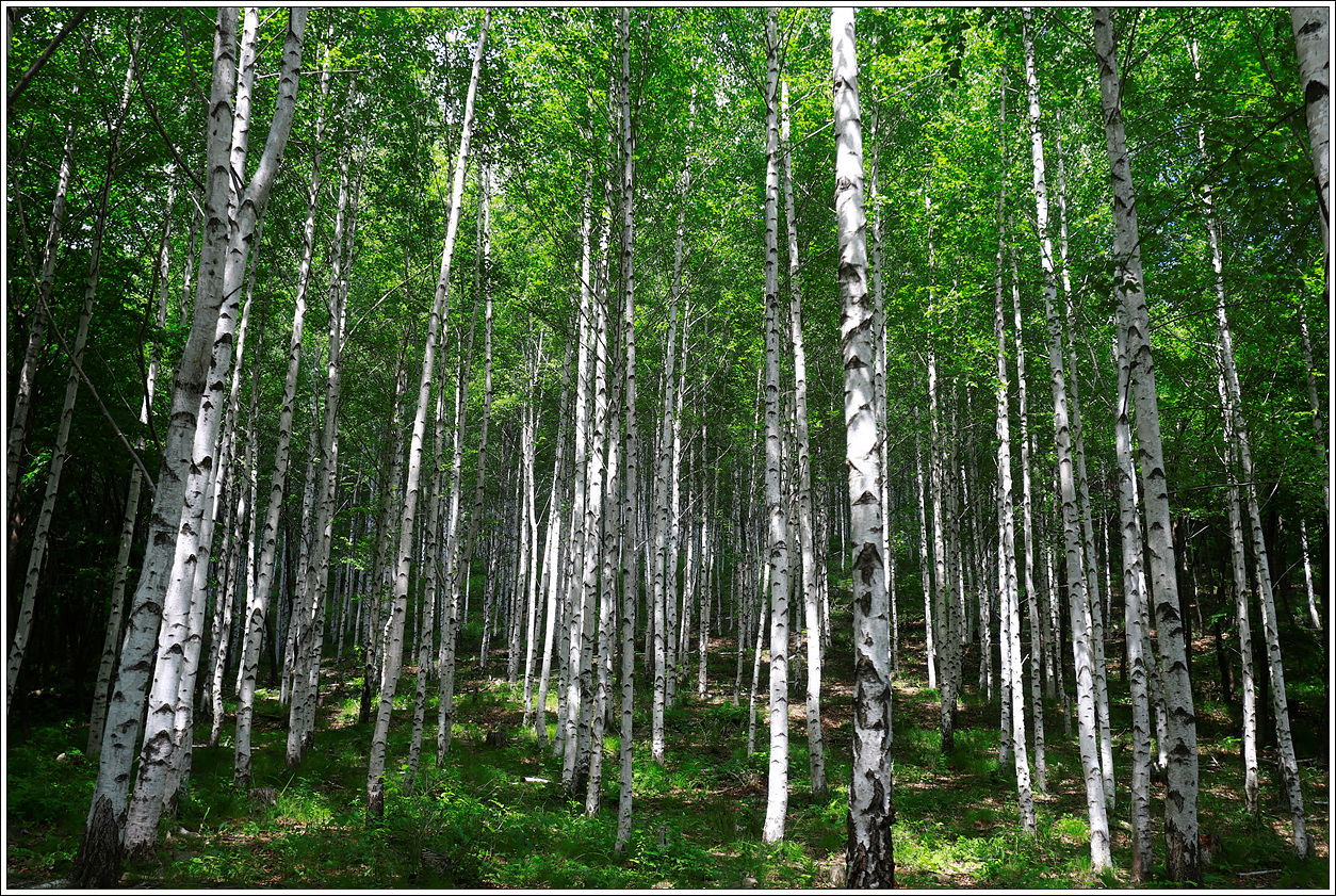 ▼ 바로 길옆 능선에 자작나무숲이 조성되어 눈길이 간다. 넓은 면적은 아니지만 이런 곳에 자작나무가 있으리라고는 생각지 못했다. 자작나무는 사시사철 수피가 보기 좋은 나무이다.