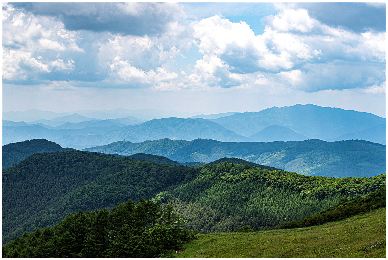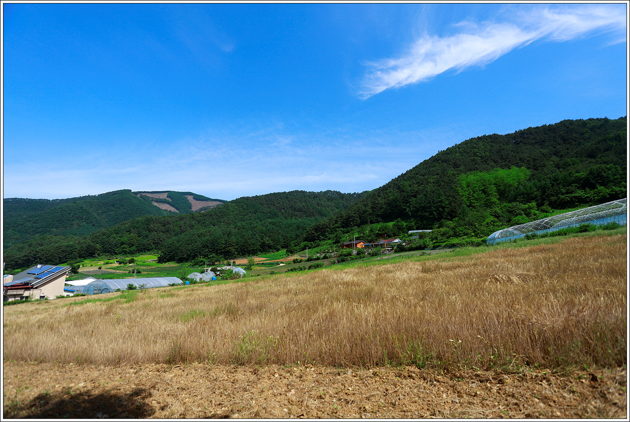 ▼ 회동2리마을을 지나 수리재입구에 도착하면서 산행을 마친다. 사실, 산행할 만한 곳이 없어 청옥산과 함께 말로만 들어왔던 육백마지기란 곳이 궁금하여 신청을 했지만 샤스타데이지를 본 것 외에는 볼거리가 없다. 더구나 수킬로 미터의 먼지 나는 비포장도로와 뜨거운 햇살아래 아스팔트를 걷는 코스는 절대 권하고 싶지 않다. 육백마지기의 샤스타데이지를 보려면 승용차로 강원도 지방의 여행길에 한번 들러 볼만한 곳이라 여겨진다.