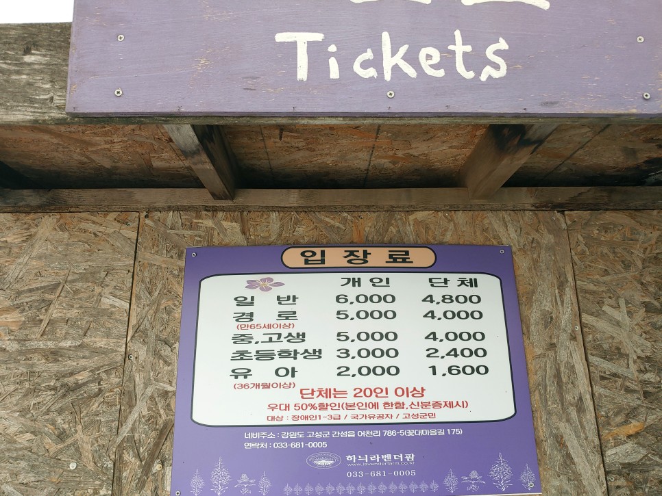 ▼ 소똥령 마을에서 11km 떨어진 곳으로 버스로 가면 15분 거리로 46번 국도로 간성읍 방면으로 가다 오른쪽으로 접어들면 길가에 수도 없이 주차해 놓은 도로가 이곳의 유명세를 알만 하다. 도로 바닥의 색깔도 보라색으로 칠을 해 놔서 라벤더 분위기를 한껏 고조시킨다. 도착한 시간은 14시 35분, 16시 10분까지 주어졌으니 1시간 이상을 이곳에서 여유롭게 보낼 수 있을 것 같다.