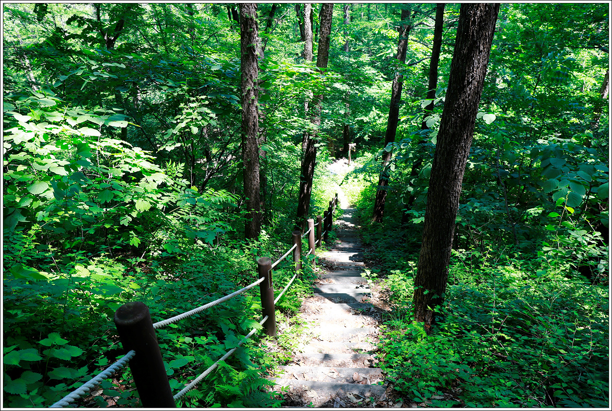 ▼ 물소리가 들리는 것을 보니 저곳까지만 내려가면 계곡물이 흐를 것 같다.