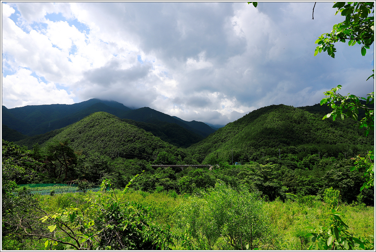 ▼ 소똥령은 조망이 전혀 없다. 우거진 나무숲이 있기 때문이기도 하지만 북천과 이어진 능선길이어서 고도가 낮기 때문이다. 북천을 완전히 빠져 나와 서쪽편의 향로봉으로 이어진 봉우리의 풍경을 담아 봤다.