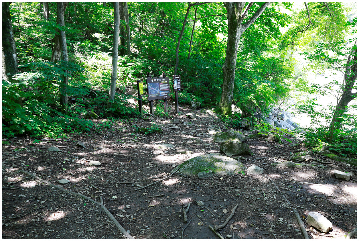 ▼ 생태체험장 방향으로 바로 진행하지 않고 왼쪽으로 접어들면 이와 같은 공터가 나오고 칡소폭포의 안내문이 세워져 있음을 보게 된다.