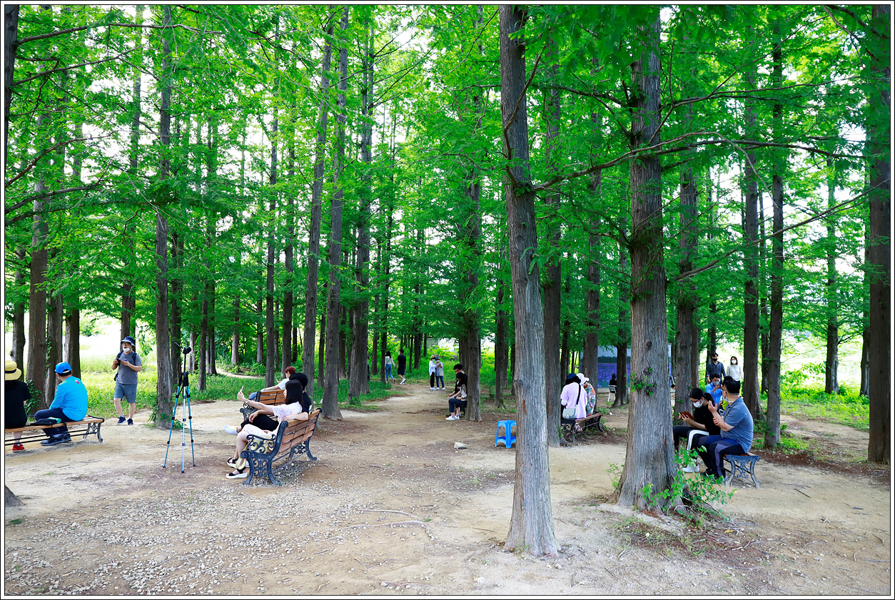 ▼ 시간이 남으니 메타세콰이어나무 숲에서 간식을 먹으며 잠시 쉬기로 한다.