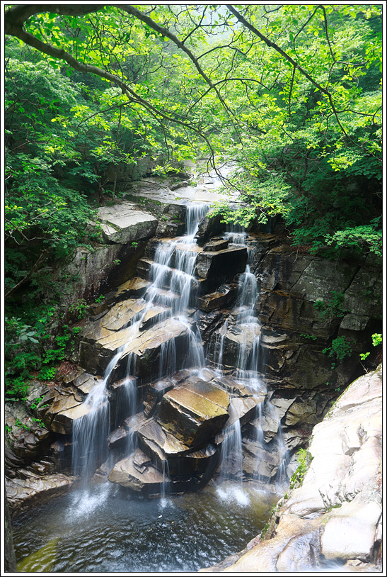 ▼ 굽이굽이 소(沼)를 타고 내려오는 비단결 같은 폭포 한장이 오늘 피로를 싹 가시게