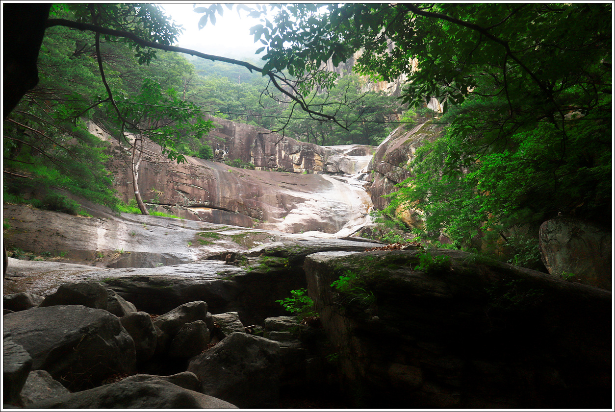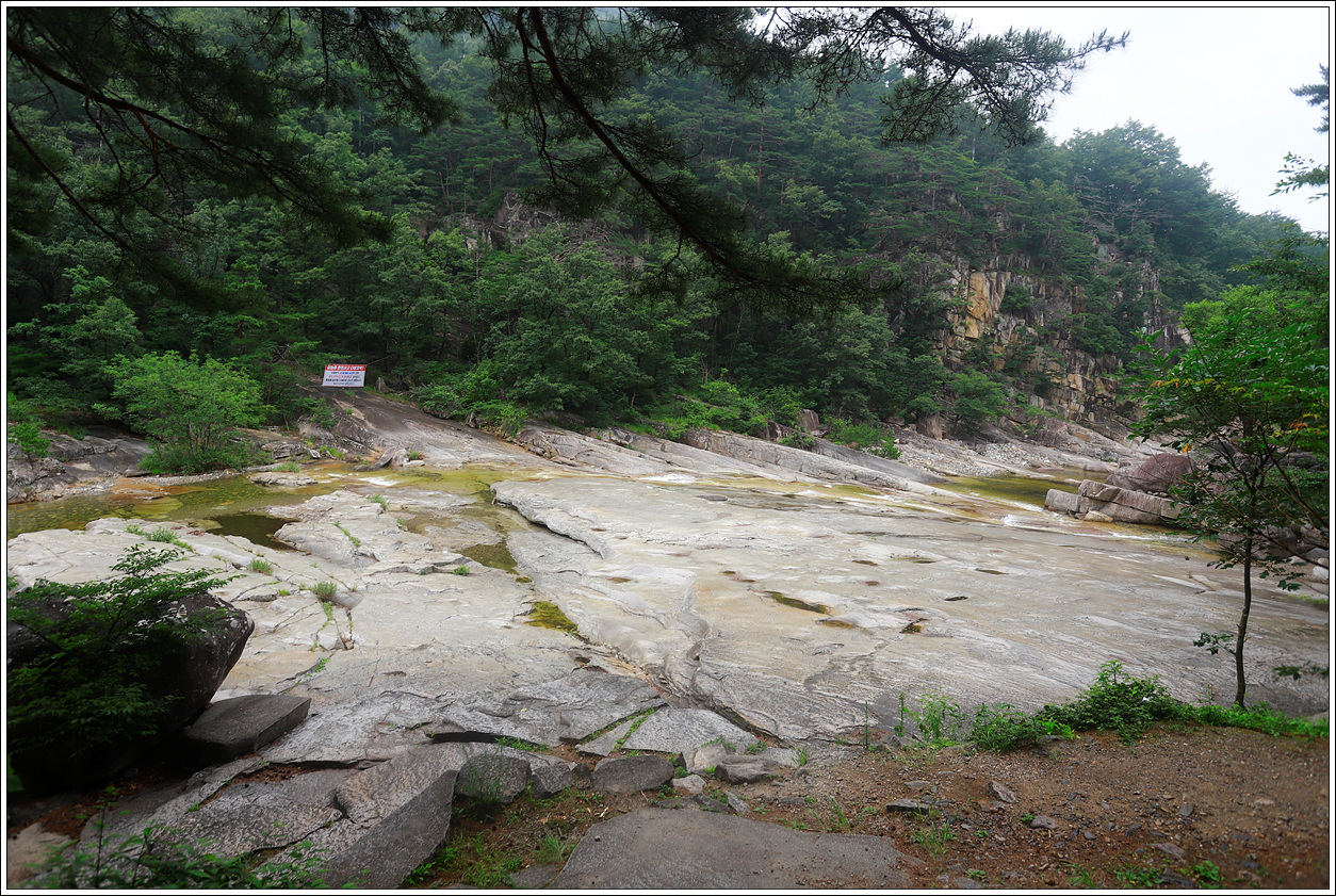 ▼ 하산 시간이 얼마 남지 않았다. 무릉계곡에 볼만한 비경들을 그냥 지나칠 수밖에 없어 또한 아쉽다. 습도가 높고 바람이 없는 날씨라 엄청 더워 온 몸이 젖었다. 잠시 씻고 옷을 갈아 입으니 그렇게 개운할 수가 없다.