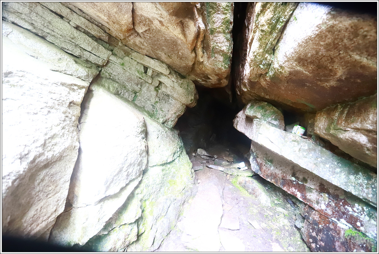 ▼ 석간수라는 안내판이 있어서 작은 굴속을 들여다 보니 끝이 보이질 않는다. 石間水로 바위사이에서 나오는 샘물의 뜻이 있는가 보다. 물이 있는지는 확인해 보지 못했다.