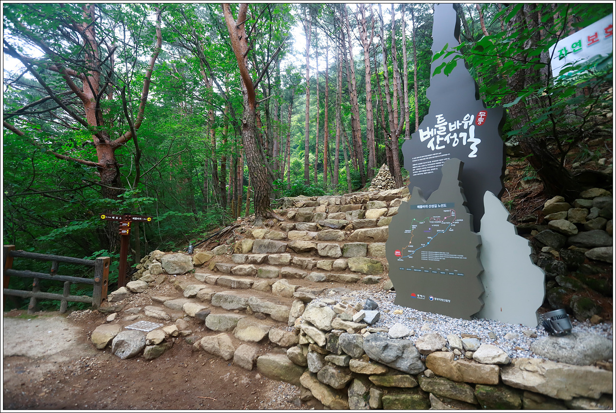 ▼ 예전에 볼 수 없었던 근사한 베틀바위 산성길 조형물이 코스와 함께 세워져 있다.