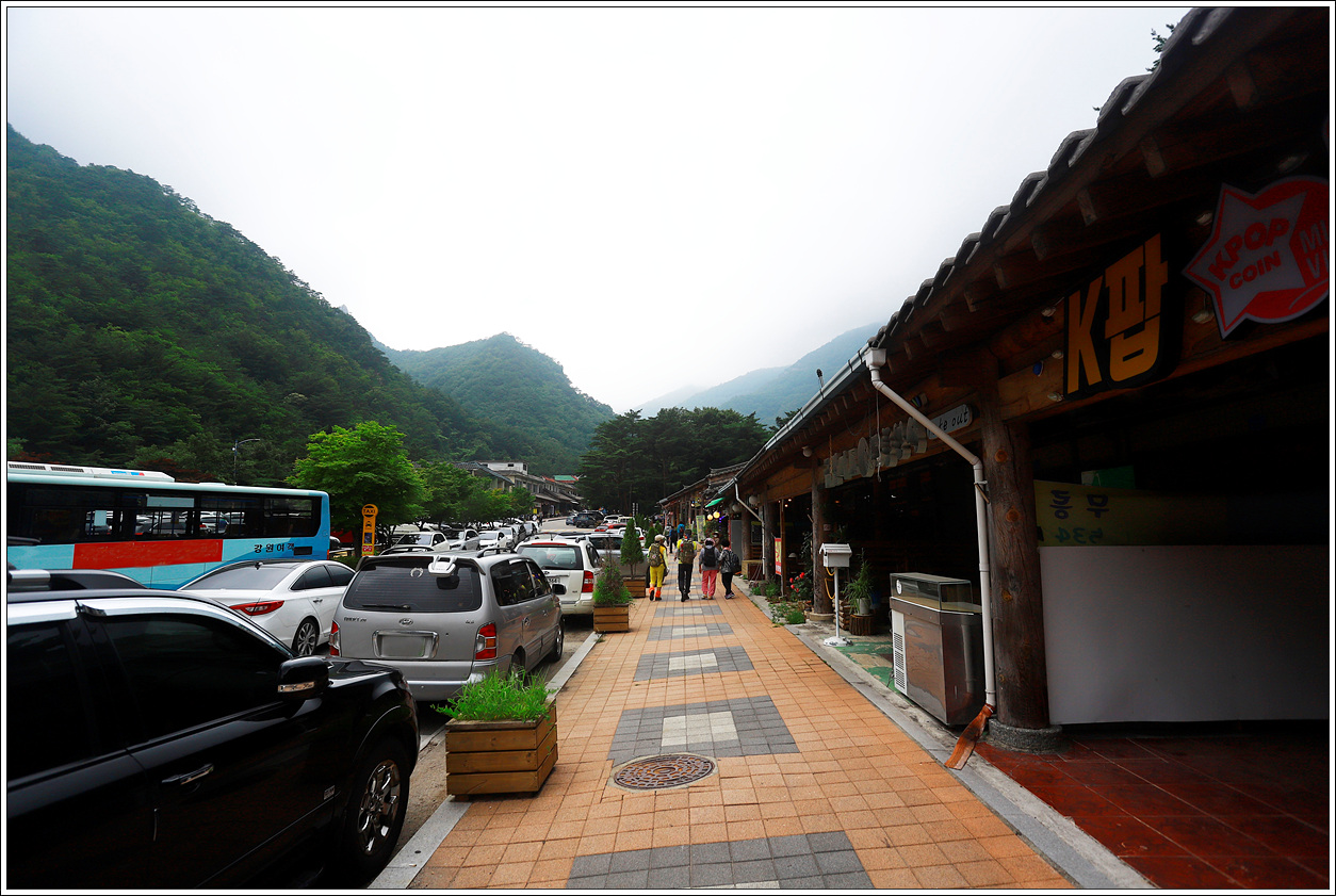 ▼ 출발하면서부터 비가 오는 날씨는 이곳에 도착하니 비는 안 오고 짙은 구름에 안개가 산 정상을 가린 상태다. 두타산은 올라본지 몇 년이 됐고 무릉계곡도 두 번이나 온 곳이기 때문에 낯설지가 않다. 주차장이 거의 만차인걸 보면 오늘도 많은 사람들이 이곳을 찾은 것 같다. 12:10에 하차하여 산행 마감시간이 18:00이니 거리상으로 보면 여유있는 시간이다.