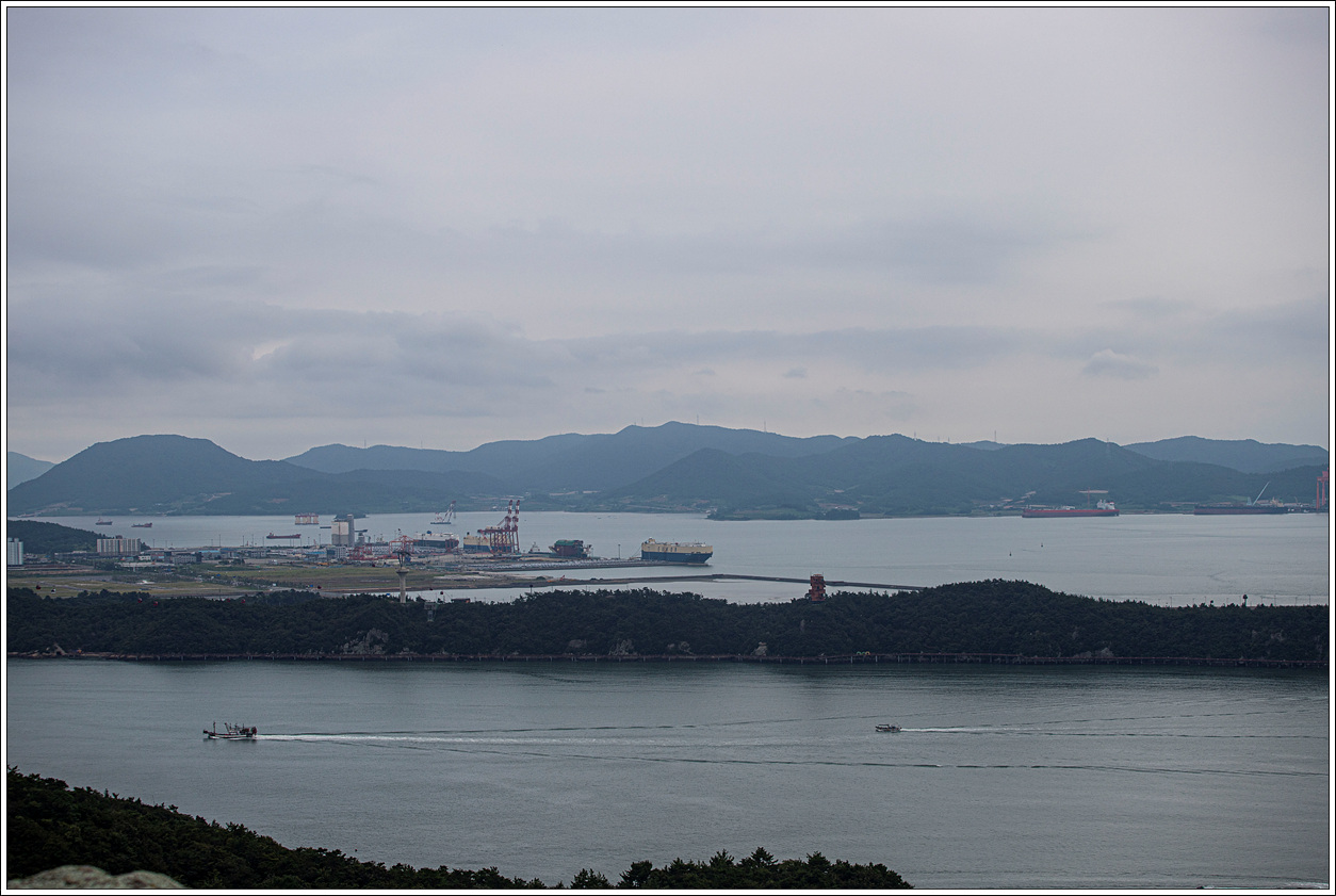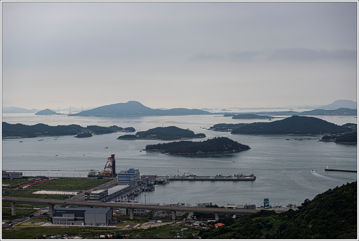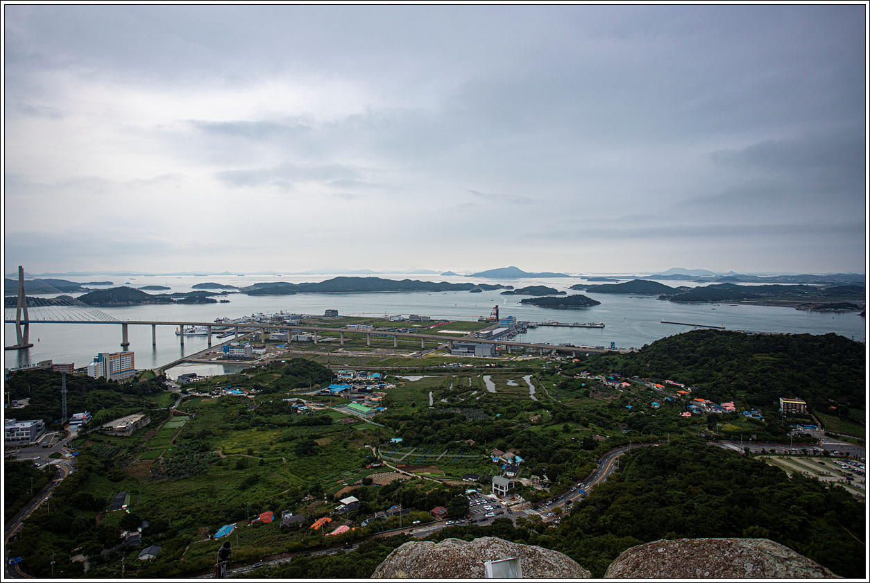 왼쪽 멀리는 해남군 화원면이고 오른쪽으로 희미하게 보이는 섬들은 신안군에 속한 섬들이다.