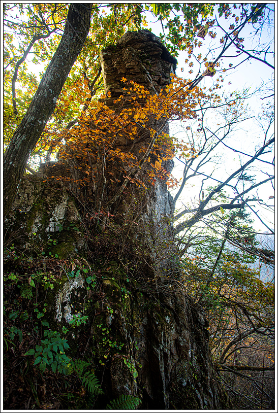 ▼ 너덜길 아랫쪽의 기암과 단풍이 어우러진 계곡 풍경...