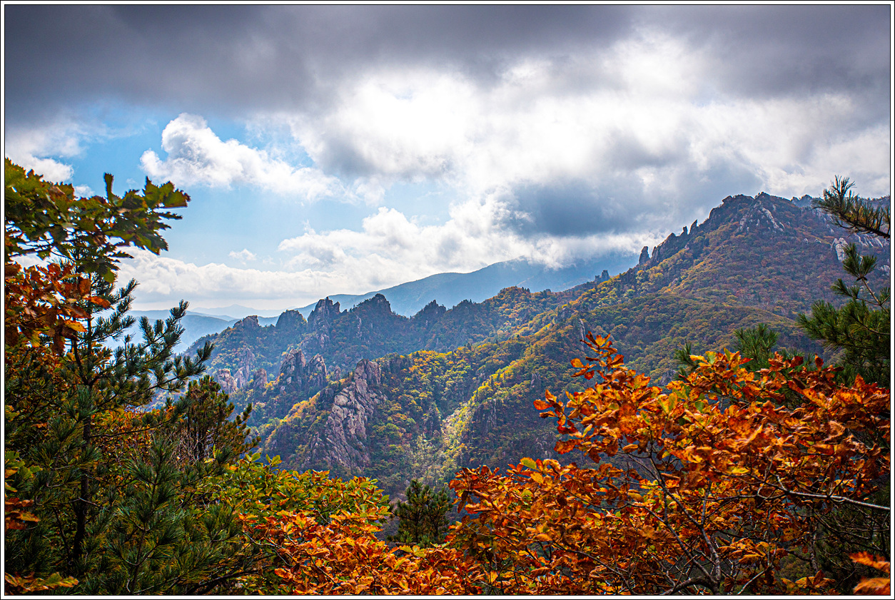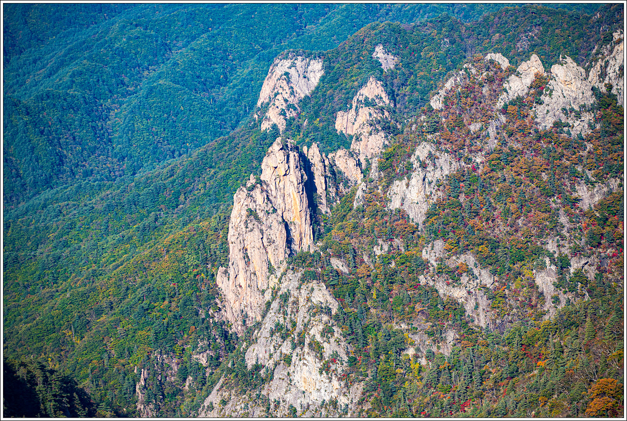 ▼ 나뭇가지 사이로 언뜻언뜻 보이는 풍경은 오랜만에 설악의 기암과 어우러진 단풍을 보는 나로서는 마음 설레는 일이 아닐 수 없다.