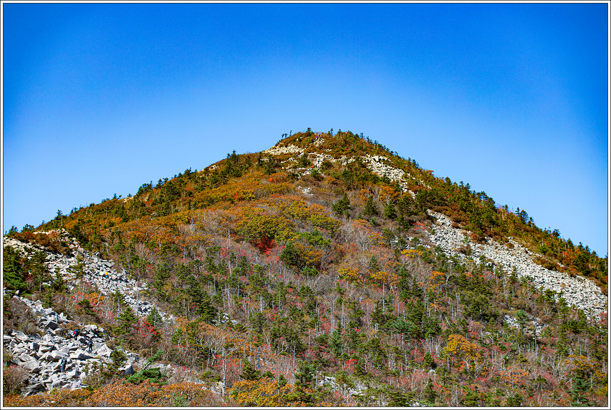 ▼ 역시 설악의 가을단풍은 그 어떤 산의 추종도 불허할 만큼 아름답다. 멀리 점봉산은 구름에 가렸다.